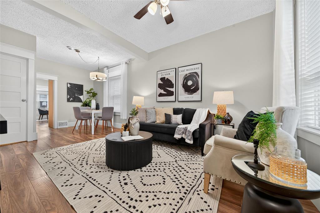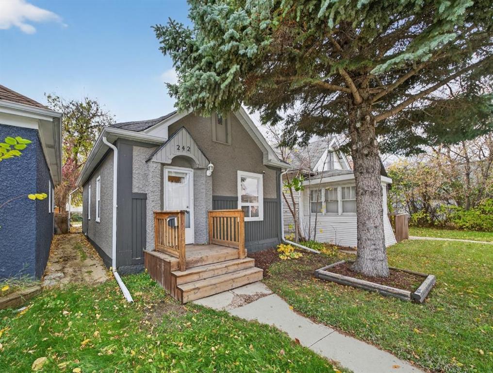 SS OCT 22. OTP 6pm OCT 27 || ELMWOOD CUTIE || This adorable 829sqft 2 bedrm, 1 bathrm BNG offers INCREDIBLE VALUE for UNDER $190k! You'll love the fantastic curb appeal and fully fenced maintenance-free backyard w/parking pad + plug in! Inside you're greeted with NEARLY 9' CEILINGS in the spacious living & dining rm w/bright neutral paint, laminate floors and updated windows. The fantastic updated kitchen has tons of maple cabinetry and all appliances are included. The back mudroom was upgraded in 2015 with new insulation, drywall, windows and a baseboard heater; making it the perfect sunny spot for an office, plant room or reading nook. Both bedrooms can accommodate a queen-sized bed, and you'll love the reno'd 4-pc bathrm (2019) w/newer tub, tile surround, flooring and toilet + built-in linen storage. The HALF BASEMENT has good ceiling height and is great for extra storage & laundry. UPDATES: Windows (mix of 02 & 12), Shingles (13), Mudroom (15), HWT (17), Bathroom (19), HE Furnace (24), Light Fixtures (25), Microwave (25). Close to schools, parks and only a 7 min drive to downtown! Perfect starter home or rental investment! || WATCH THE VIDEO TOUR || **OPEN HOUSE 230-4pm OCT 25**