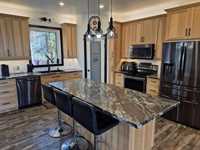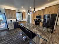 SS NOW. OFFERS TO BE PRESENTED ON OCTOBER 9th. This beautifully crafted custom-built home features 5 bedrooms, 3 full bathrooms, and high-quality finishes throughout. The heart of the home is a stunning hickory kitchen with soft-close cabinetry, ample storage and workspace—perfect for home chefs and gatherings. The open-concept living room offers a cozy wood-burning fireplace with a custom stone surround. The spacious primary suite includes a trayed ceiling, walk-in closet, and a 4-piece ensuite with a storage closet. Triple pane windows throughout ensure energy efficiency & year-round comfort. A large, welcoming foyer leads to a grand 5' wide staircase up to the main living area. The fully finished basement features a generous family room—ideal for relaxing or entertaining. Outside, enjoy a beautifully landscaped, treed yard with a fire pit, raised garden boxes with strawberries, a storage shed, and a custom oak and pine staircase leading to a covered veranda deck with storage underneath. The heated, insulated triple car garage includes a sink and counter space, perfect for projects. The exterior is finished with durable Hardie board siding. A rare blend of craftsmanship, comfort & thoughtful design.