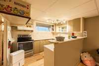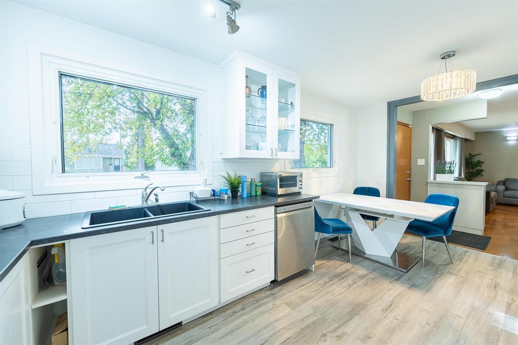 OTP 10/15 Welcome to this solid BNG in the heart of St. Vital! Built in 1975 on a 50' wide lot, this well-maintained home offers comfort, space, & options for multi-generational living. The main floor features a spacious living room with a huge front window overlooking the fenced property, filling the space with natural light. Flooring includes hardwoods, laminate, and vinyl. This kitchen has been completely remodelled with plenty of cabinetry, equipped with stainless steel appliances, including dishwasher, and has an open concept dining area, all with south-facing windows, making it a place you will love to spend time in. The main floor has 3 large bedrooms, all with closets & big windows. The main floor bath is fully functional with a tub & shower. The lower level is finished, offering an in-law suite with its own kitchen, recroom, 2 bedrooms, office & bathroom. Accessed by the side-door entry, providing individual space if desired. All windows are triple-pane. Backyard deck & gazebo, interlocking brick patio & a double garage with a natural gas line, ready for furnace tune-up or replacement, which provides a heated workshop once complete. Located near great schools, parks, shopping, bus & more!
