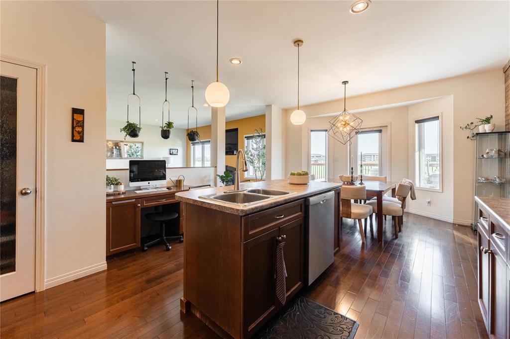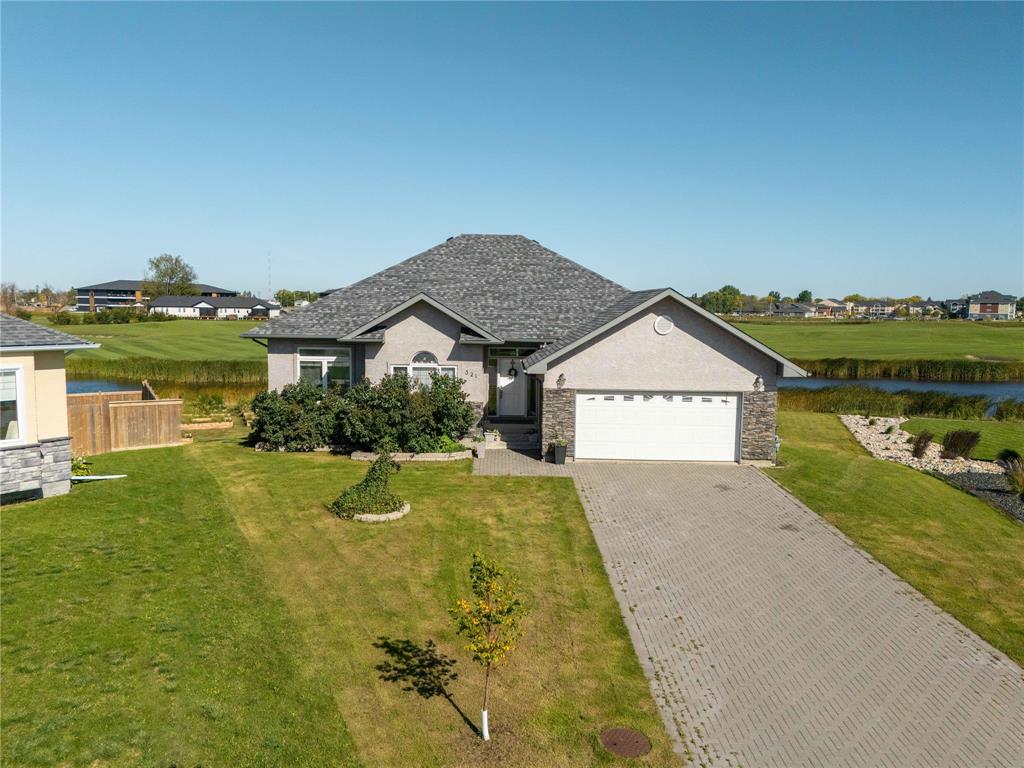 SS now, offers as received. Welcome home to 321 Troon Cove, Niverville! An executive 1800 sqft walkout-bungalow w/ main floor laundry, 5 bed 2.5 bath situated on a massive pie-shaped lot and backing onto the 5th hole of Old Drover's run, offering one of the best views in Niverville. A large front foyer opens to the massive living room with Hardwood floors, lake views, gas fireplace and plenty of natural light - perfect for entertaining. The kitchen is equipped with plenty of counterspace, maple cabinets, a pantry, and connects to the dining room and patio door leading to a large deck overlooking the yard, lake and golf course. The plumbed laundry room is perfect for large families and steps from the large 2nd and 3rd bedrooms, well-sized for any age. The Primary bedroom offers a large walk-in closet, and 4 pc tiled ensuite with jetted tub. The basement is equipped with another two bedrooms, 2 pc bath and a massive 34' rec room looking out to the backyard and patio. Houses and Lots of this size are rarely seen in the community, least of all with such an exceptional view - this is the one you've been waiting for! Call today to book a private viewing