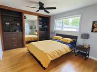 Showings start Wed. Oct 8 noon. Offers reviewed Tues. Oct 14 OPEN HOUSE Sat.2-4 Oct 11. FABULOUS remodeled Bungalow nestled on a quiet Bay in River Heights. Spacious L-shaped living/dining room is flooded with light from West facing large windows. pot lights, and original oak Hardwood floors. Architecturally designed kitchen has heated floors, pantry, quartz counters, and Zebrawood Cabinets, high-end appliances, and LOTS of storage! 3 bedrooms on main (1 presently used as a den). Primary bedroom has a wall of drawers/shelving in addition to 2 large closets and 2 piece ensuite. Basement has a large rec room, 3 bedrooms, 4 piece bath, laundry and storage room. Total 6 bedrooms, 2 1/2 baths. Shingles redone 2021. Double garage. Walk to Grant Park, PAN AM Pool, REH-FIT! Much loved home. Move in ready!