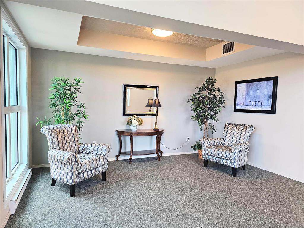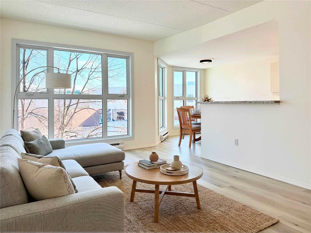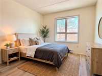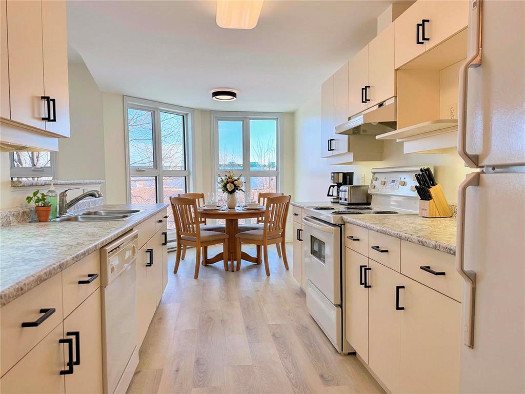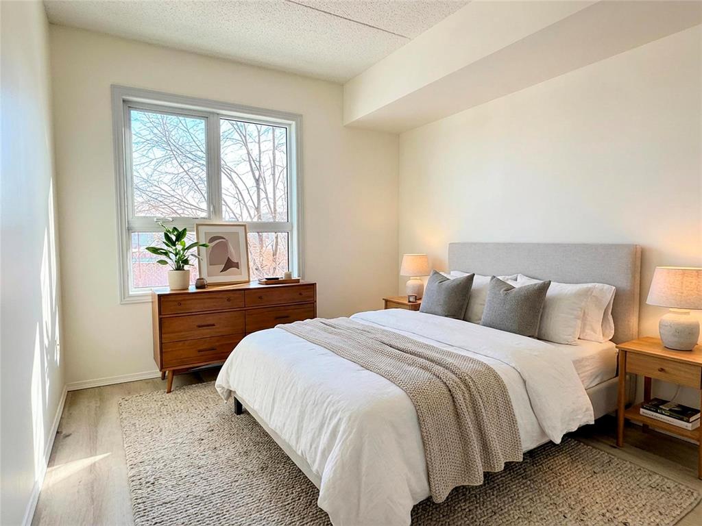 Welcome to inviting 55+ living at Lindenlake Terrace! Enjoy comfortable, low-maintenance living in this Market-Value Leasehold operated by non-profit Lindenholm Ministries. Ideally located in Linden Woods near the Reh-Fit Centre, shopping, restaurants, and transit. This remodelled second-floor suite offers 2 bedrooms, 2 bathrooms, 1,192 sq ft with 9-ft ceilings, fresh paint, new luxury vinyl plank flooring, and large east-facing windows. The kitchen features new countertops and hardware, an eating area and separate dining room. Both bathrooms have new countertops and hardware, with one featuring new shower walls. The spacious primary bedroom includes a walk-in closet and updated ensuite. All appliances included, in-suite laundry, A/C, underground heated parking, and storage locker. Beautiful grounds include a lake, walking paths, gazebo, BBQ area, and community garden. Amenities include a welcoming common room with fireplace, piano, pool table, full kitchen, plus a guest suite. This well-maintained concrete building has an elevator. The predictable monthly fee includes water, cable, parking, maintenance, and reserve fund, with no property taxes. Enjoy life in this vibrant, welcoming community today!