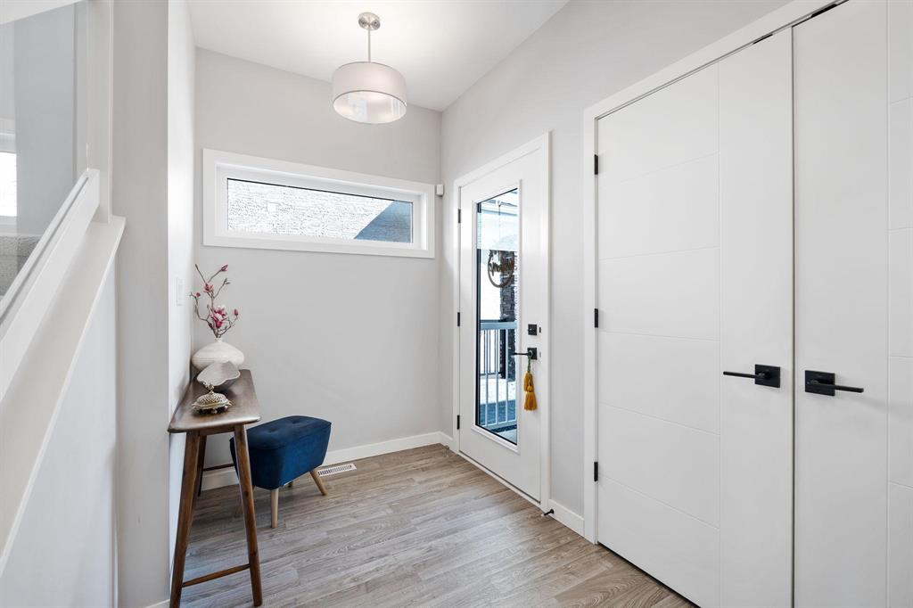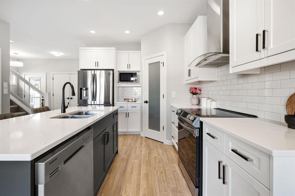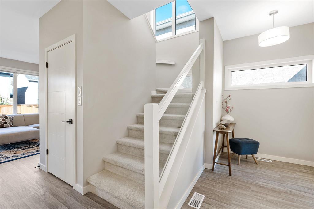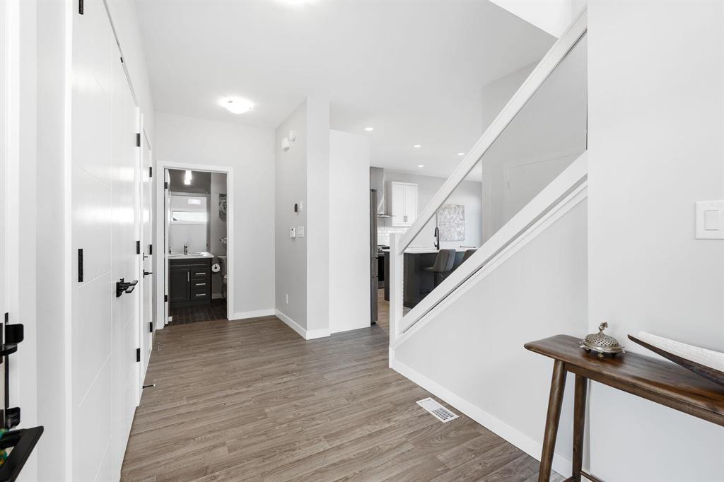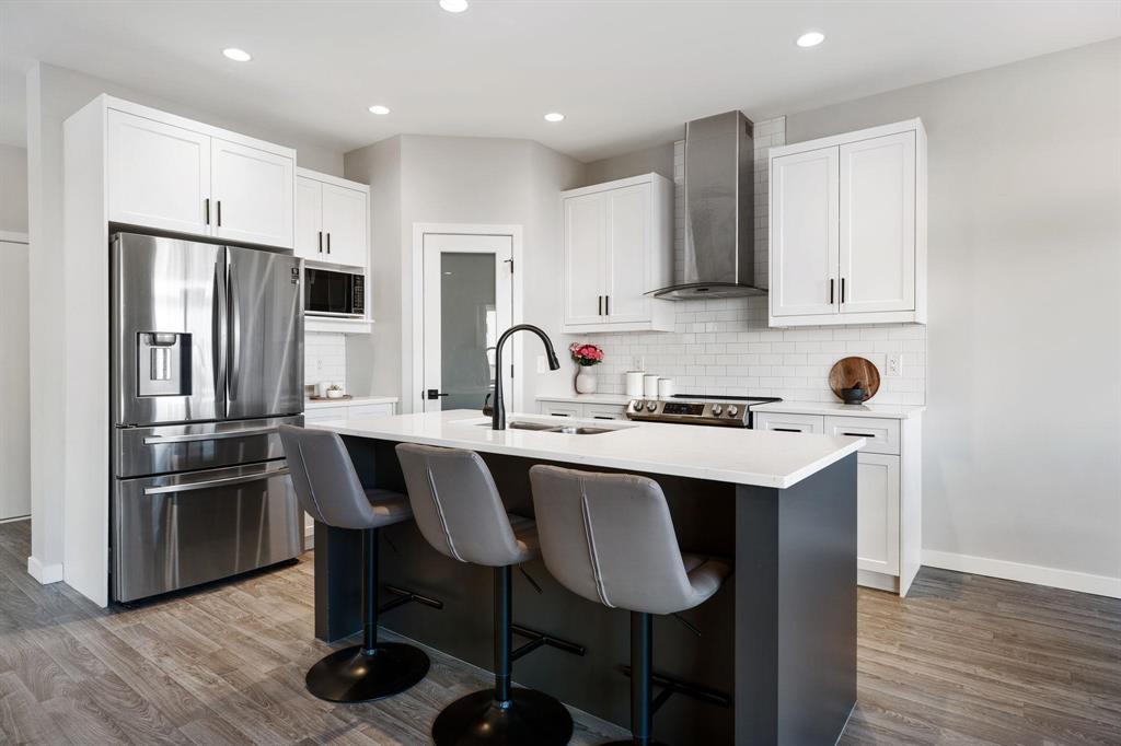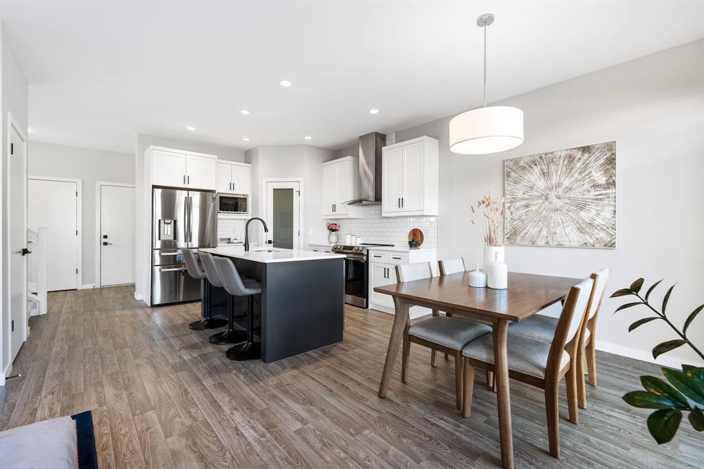 Showing starts now. Offer will be reviewed as received! | Built in 2022 with over $40,000 in thoughtful upgrades, this Devonshire Park 2-storey offers quality construction, modern finishes, and long-term potential. Featuring a piled foundation, 2x6" exterior walls, engineered floor joists, and a 200-amp panel, this home was designed with durability in mind. The main floor offers a bright, spacious layout with vinyl plank flooring throughout, an open living/dining area, powder room, and a stunning kitchen—complete with quartz countertops, tiled backsplash, large island, and a chimney-style hood fan. Upstairs includes three bedrooms, a full bath, and a private en-suite in the primary. A key highlight is the separate side entry offering future rental suite potential in the basement. Located just minutes from Costco, Kildonan Place Mall, schools, and dog parks, and set on a fully fenced lot, this well-maintained home is ideal for families, investors, or anyone looking for peace of mind and practicality in a newer neighbourhood. Book your showings today!