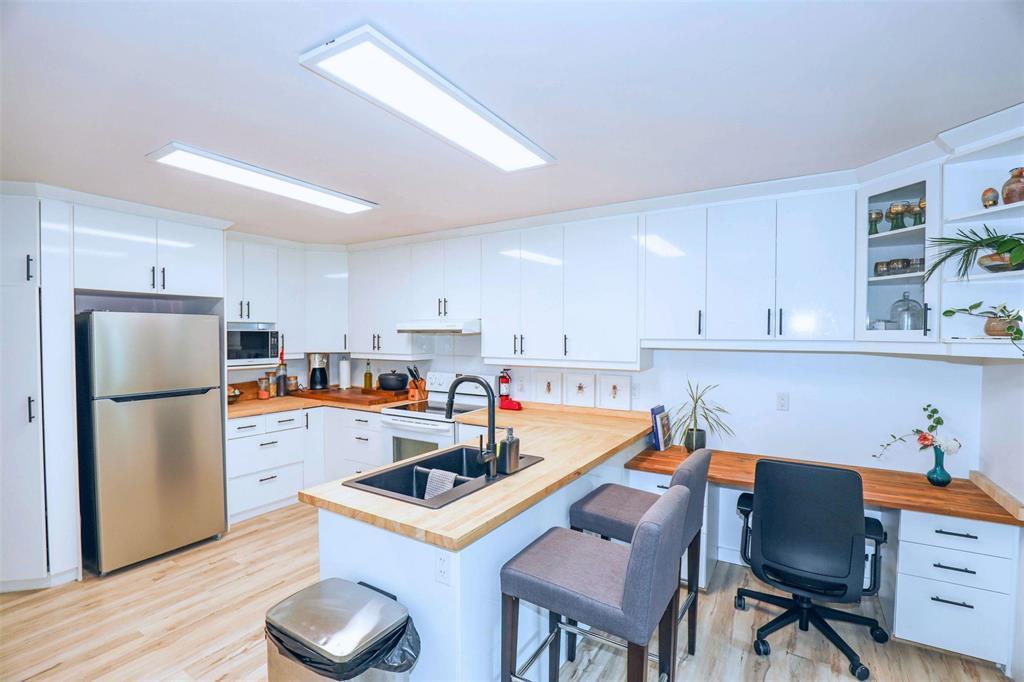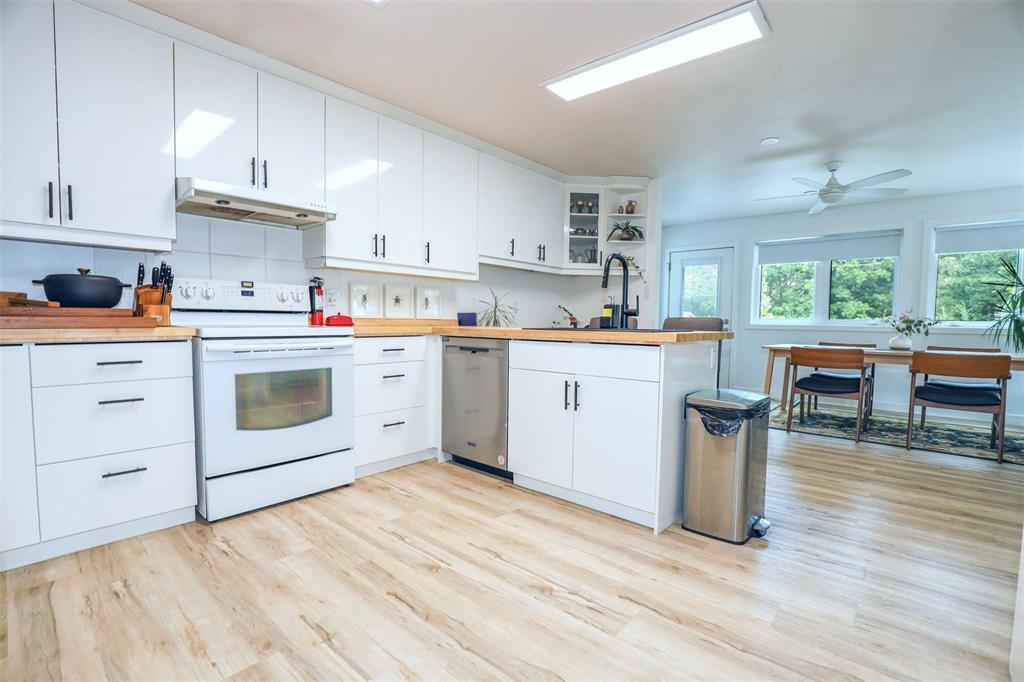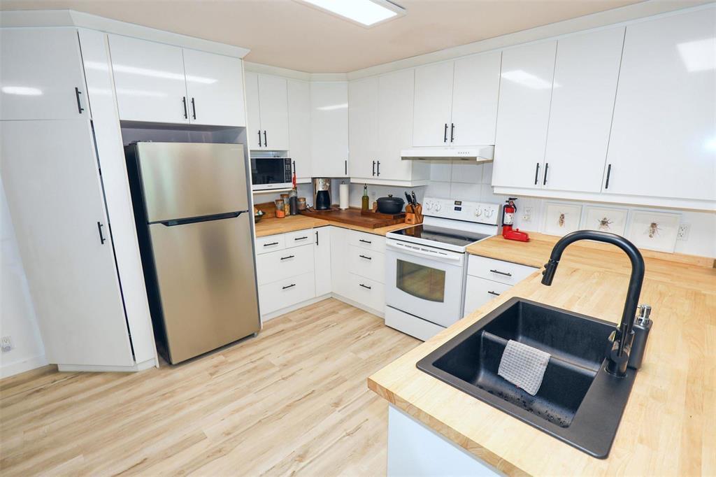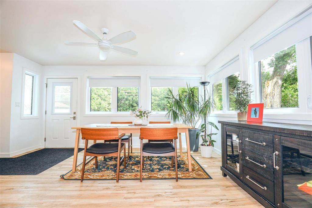 A great opportunity to own this extensively remodelled home on a park like lot (75 x 253). With its spacious and open living spaces this home is ideal for entertaining . A large , bright living room off the front entrance with neutral decor and cork flooring. Huge kitchen with an abundance of cupboard and counter space that overlooks the dining area. 2good sized bedrooms. A recently remodeled 4 pce bathroom with vinyl laminate flooring, acrylic tub/shower. Combination furnace/laundry/storage room. There is direct access into the oversized single attached garage from the back door area. Plenty of space for your patio furniture with huge Duradeck finished decks in the front and back of the house. The yard has a lge garden area and a huge green space as well. With its gloss white “Chef’s” kitchen and open concept feel, this is a place that you would love to enjoy with family and friends . Don’t miss this one !!!