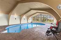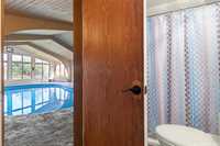 Tucked behind a long private driveway off Kilkenny Drive, this exceptional property offers the feel of country living within the city. Surrounded by reserve land, you’ll enjoy unmatched privacy and stunning river views in every season. Inside, soaring vaulted ceilings with wood beams, a stone fireplace, and expansive windows create a warm, inviting atmosphere that perfectly frames the scenery outside. The kitchen and dining areas flow effortlessly into a bright sunroom with fireplace, dry bar, and pool access—an ideal setting for both everyday living and entertaining. Two spacious main floor bedrooms, each with their own ensuite, provide comfort and convenience, while the upper level adds more bedrooms, a full bath, and a flexible den or office. The fully finished lower level is built for enjoyment, featuring a theatre room, sauna, recreation areas, and hobby spaces. At the heart of the home, the heated indoor pool with stamped concrete surround offers year-round relaxation and incredible river views. Ask your REALTOR® for the full photo gallery, feature sheet and floorplan - there’s so much more to discover here.