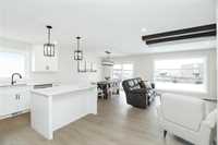10 Caribou Bay- prime oversized 62'x140' lot in hot neighborhood of Parkhill, backing onto the brand new schoolyard! Curb Appeal to the max. 22' wide concrete driveway & front walk (built in planters!), BONUS SPACE beside the 24x24 garage for camper/boat/additional parking! Head inside to 1460 square feet of custom finishings! Beautiful woodwork detailing throughout- from the stairway railings, wood beam tray ceiling detail & mantle above fireplace, media shelving in living room to cabinetry in the bonus appliance pantry/coffee bar! Open living space for entertaining, front office (or 2nd bedroom) w/ massive picture window & MAIN LEVEL LAUNDRY are just some features! Large eat-up island w/quartz countertops & cabinetry right to the ceiling. Total of 3 bed, 2 bath and laundry on main. Primary bed includes 4pc ensuite and separate walk-in closet with barn door feature. Downstairs is thoughtfully laid out for a future 3 good sized bedrooms PLUS rec room & rough-in bathroom. Wall rough-in on main for central vac, steel beam construction, central a/c, New Home Warranty! Ask for full list of features that don't fit in this description!