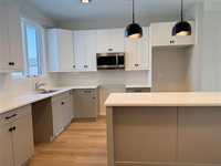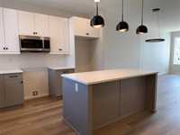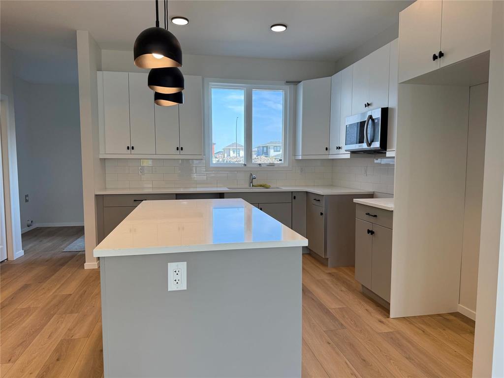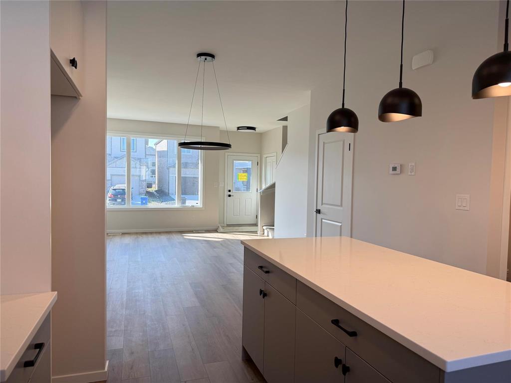 Exciting new floor plan available for quick possession in Prairie Pointe! Features an open main floor layout with 9' ceilings, vinyl plank flooring throughout and separate side entry to basement. The L-Shaped Kitchen has a central island, quartz counter tops, pantry and a window above the sink overlooking the rear yard. From the back yard you enter into a main floor laundry mud room. The second floor has 3 bedrooms, 2 bathrooms and a walk-in closet in the primary bedroom. The rear yard has a double concrete parking pad. Show home of same floor plan available to be viewed by appointment.