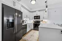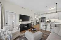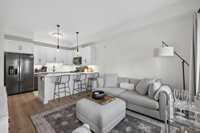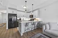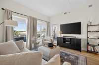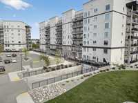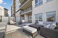 Bright, pet-friendly 833 sqft main-floor unit with 10-ft ceilings, open concept living area, sleek kitchen with black SS appliances, primary suite, large, oversized terrace, and building amenities that are sure to impress!