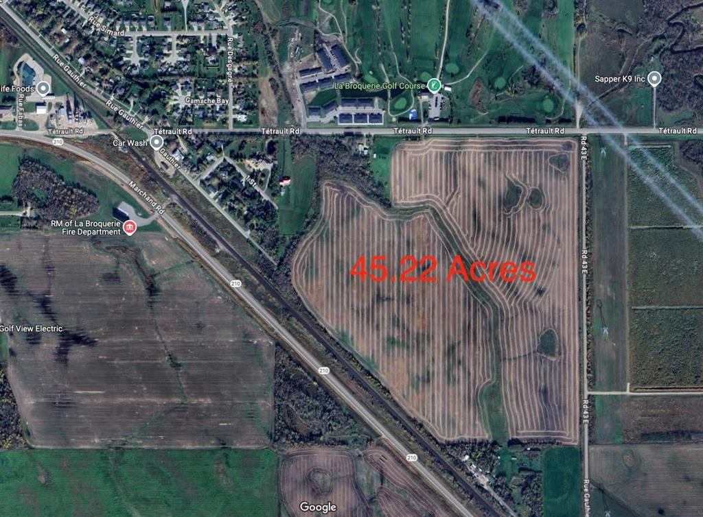 45.22 Acres of Prime Development Land. An exceptional opportunity in La Broquerie! This expansive 45.22-acre parcel is ideally situated on the east side of town, fronting paved Tetrault Road. Municipal services run along the west edge of the property on First Street, enhancing development potential. The RM is currently undergoing a rezoning master plan, and this land can be re-designated as part of the process. Early applicants have the unique advantage of shaping their own zoning plan and submitting it for consideration while adjustments are still possible. Seize this rare chance to influence the future of this prime development site!