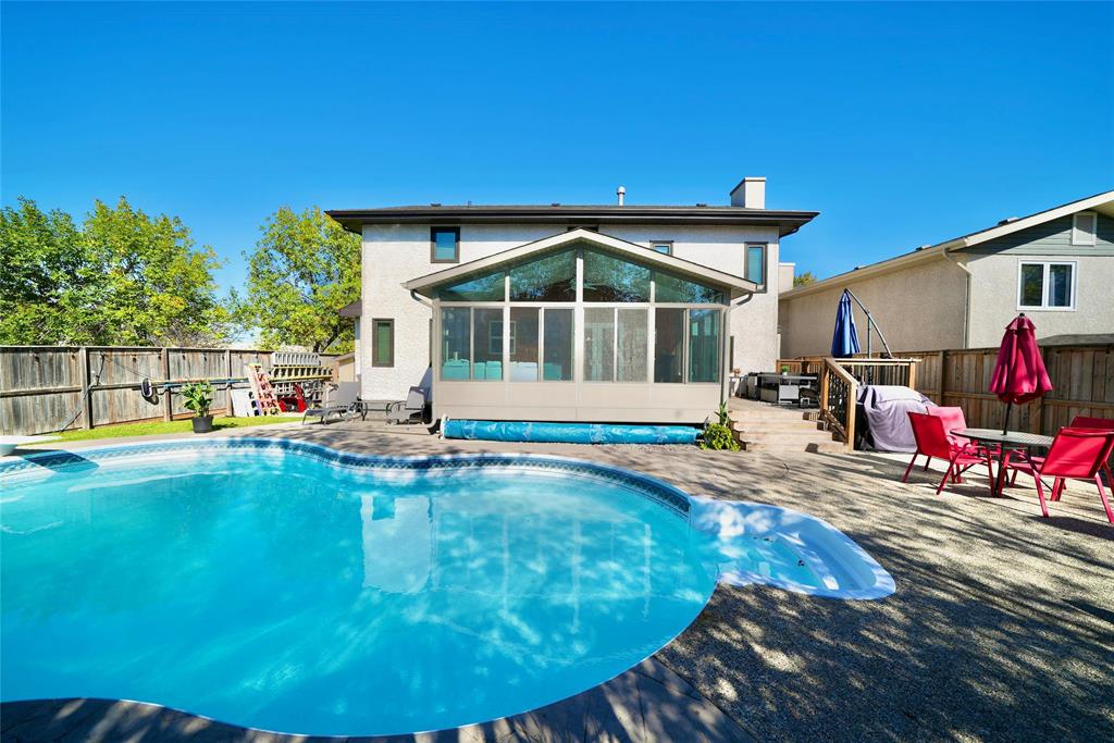 Showings Start Now. Offers Presented As Received. HERE'S THE ONE YOU'VE BEEN WAITING FOR!! Spectacular 4 bedroom, 3 1/2 bathroom, 1,971 sqft, 2 storey home with an inground pool, nestled in the heart of Island Lakes, minutes away from all levels of schools, parks, shopping + so much more. Some of the many features of this large family home/property include a front facing living room with lots of natural light. Large upgraded eat-in kitchen with tons of cabinets, quartz counters/island, tile backsplash, stainless steel appliances and garden doors to the large sunroom with vaulted ceilings, overlooking the West facing inground salt water pool. Spacious dining room ready to entertain family and friends. The family room has a gas fireplace finished with travertine stone and access to the 2pcs powder room, laundry area and to the double attached heated garage. Upper level consists of the primary bedroom with his and hers closets and newer 4pcs ensuite. Also includes 3 more large bedrooms and upgraded 4pcs bathroom. Lower level has a large recroom with a wet bar, 3pcs bathroom and lots of storage. Too many features/upgrades to list. Don't miss out on owning this incredible home/property! Call today!!