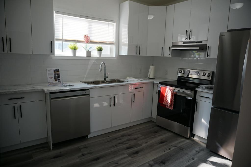 Charming newly remodeled 3 BR 1 1/2 storey w/ modern upgrades. Brand new kitchen w/ new appliances, 2 new bathrooms, floorings, central air conditioning, electrical, deck, roof shingles, PVC windows, privately fenced yard w/ sliding back gate for smooth parking.