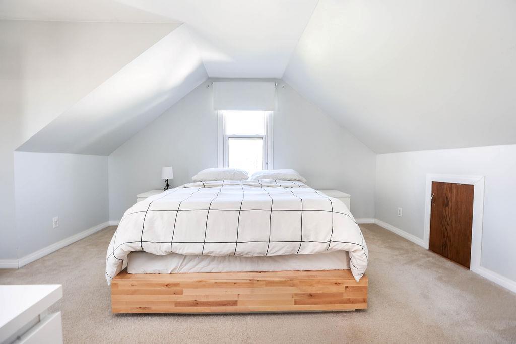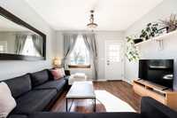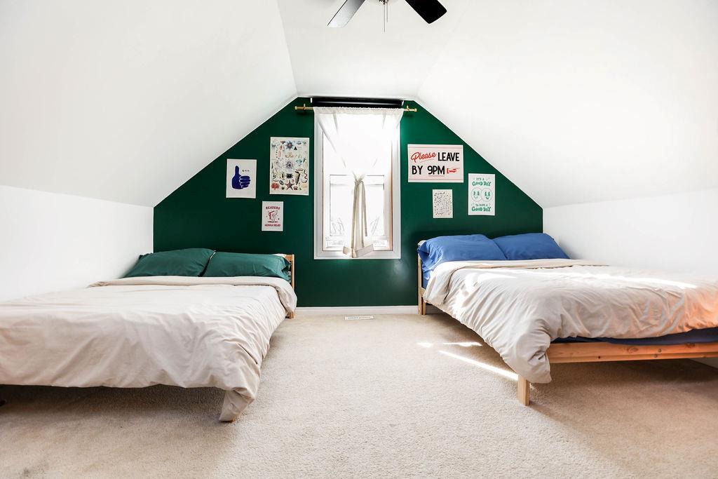 SS Oct 9th OTP Oct 14th. I know you’re happy already…but living in this home is just going to make you a little bit more happier. I promise. The sunlight pours through every room, and when you look out from the sunroom, you’re staring right at Kern Park with those big old trees and two baseball diamonds. It’s got that good, peaceful feeling. The main floor’s wide open with high ceilings, a bedroom, and a kitchen with newer garden doors that open out to the perfect deck. Upstairs, both bedrooms are big and the primary has the perfect three-piece ensuite so you don’t have to share with your kids or the rest of the family. The lot’s 53 by 100 and those cedar trees out back? Some of the biggest I’ve seen in the city. There’s also a single detached garage, a shed, and a parking pad if you’ve got extra vehicles or toys. It just feels like home like love. Two garden spots are ready for your veggies, and the soil’s already good to go. Roof was done a few years back, newer high-efficient furnace and AC too. This place is going to make you smile the second you walk in.