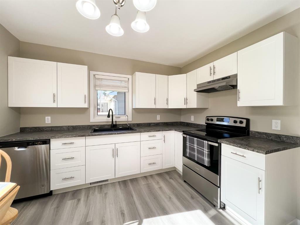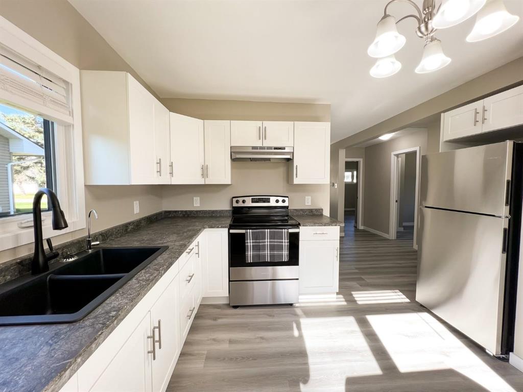 Situated on a large lot, this beautifully renovated home offers a perfect blend of modern comfort & functionality! Step inside to a stunning brand-new kitchen, complete with stylish cabinetry, sleek countertops, & new appliances. The home features 3 bedrooms & a new 4 pc bath with contemporary fixtures & finishes. Throughout the home, you’ll find new vinyl plank flooring, drywall, & modern light fixtures, giving every room a fresh look. New plumbing, hot water tank, well pump, pressure tank, water softner and reverse osmosis as well as some wiring. Triple-pane windows & additional attic insulation add energy efficiency while keeping the home quiet & comfortable year-round. The finished basement provides even more living space, featuring a large family room perfect for movie nights or play area. There’s also plenty of additional storage to keep everything organized. Outside, the property continues to impress with a detached garage offering parking and extra workspace, as well as a garden shed for tools and equipment. The expansive yard provides endless possibilities—whether you envision a play area, garden, or outdoor entertaining space, this property has the room to make it your own.