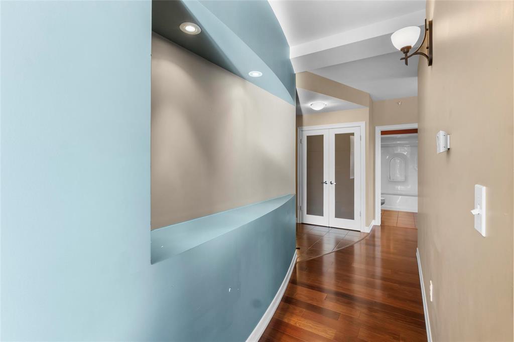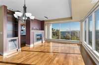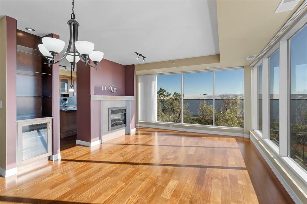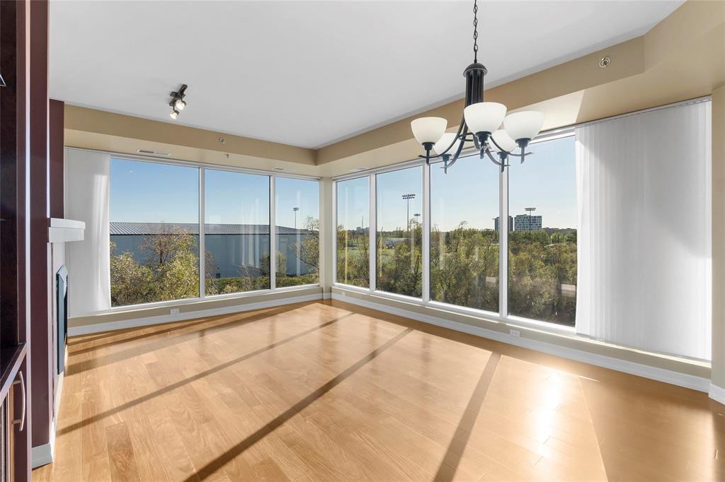 S/S Wednesday, October 15th, offers reviewed as received. If you are looking for a private, executive style condo that offers beautiful finishes in a convenient location then look no further! This three bedroom, two bath unit features endless natural light with floor to ceiling windows in the living and dining room. The hardwood floors greet you as you enter and flow through the majority of the unit, leading down a stylized hallway that invites you to adorn the unit with your personal touch of artwork and design. The split floor plan is ideal for having guests with two bedrooms on one side that share a full bathroom and the primary suite on the other which connects to an enormous walk-in closet and ensuite bath with stand alone soaker tub. The eat-in kitchen is sure to please with wood cabinets and stone counter tops while the entertaining area delights with tile surround fire place and access to a spacious balcony. The building features underground parking with carwash, full gym, well stocked library, a full recreation room with full kitchen and a guest suite for the extra space you need during family visits. These units rarely become available, you're gonna love it.