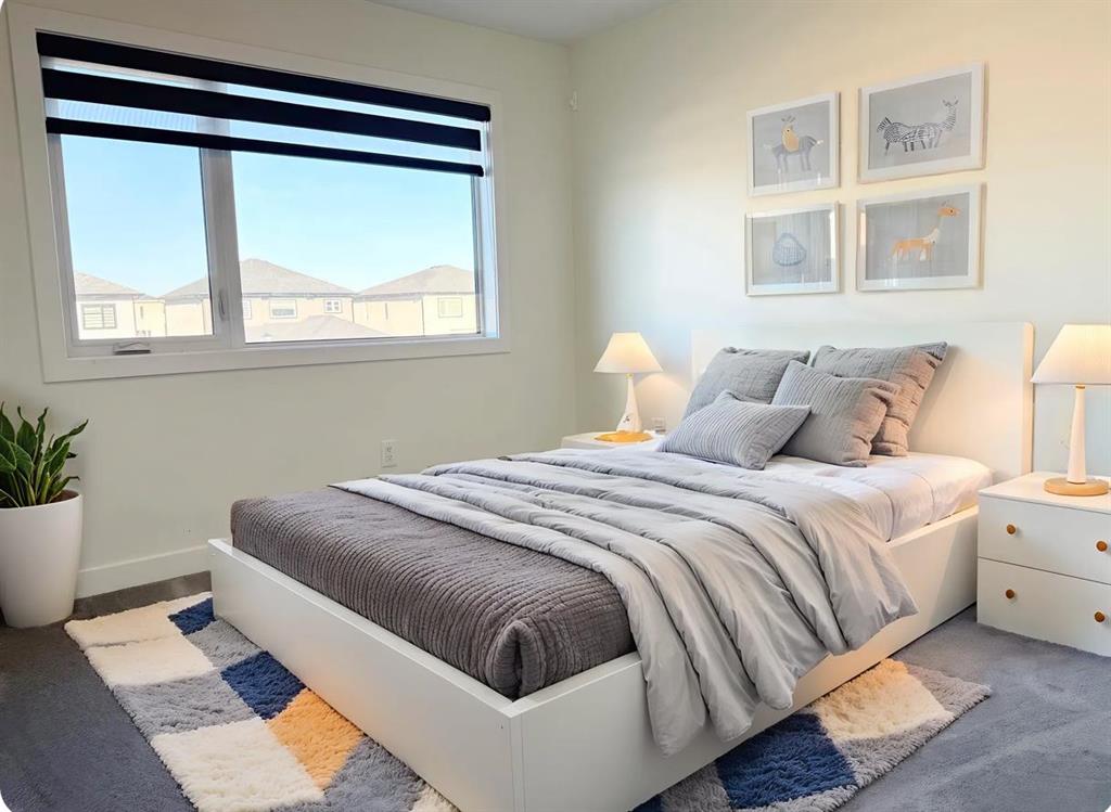 Showings start Sunday October 19th with offers presented as received. Welcome to this 1,505 sq. ft. semi-attached home in Parkview Pointe! Offering four spacious bedrooms and three and a half bathrooms, this residence perfectly blends style, comfort, and functionality. The main level features a living room with electric fireplace, an open-concept kitchen with quartz countertops, soft-close cabinetry & spacious island and a bright dining area complete with pantry and powder room. Upstairs, the primary suite impresses with a large walk-in closet and ensuite featuring a walk-in shower. Two additional bedrooms and a four-piece bathroom provide plenty of space for family or guests. The fully finished basement extends your living space with a large recreation room, a fourth bedroom, a full bathroom, laundry and ample storage. This home includes premium MDF casings and flooring, kitchen pot lights, a cozy fireplace, LED shower lighting, and full surround tubs. Additional highlights include a high-efficiency furnace, paved driveway, and more—making this exceptional home truly move-in ready. Some rooms are virtually staged.