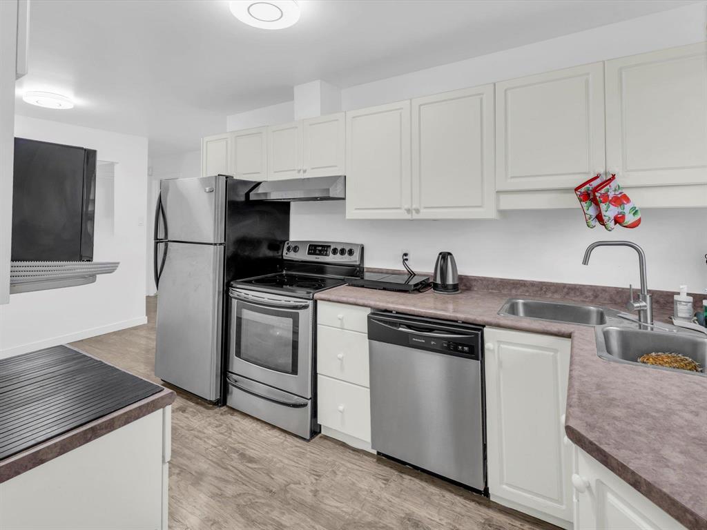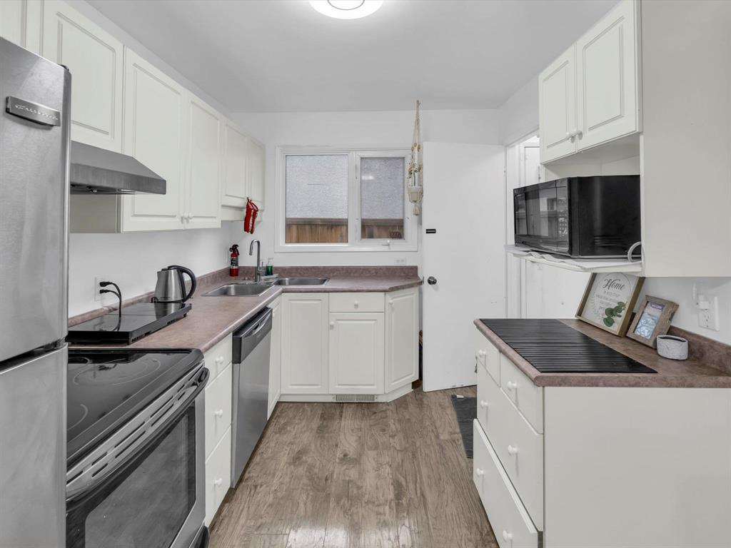 SS Oct 19 offers anytime; Bungalow 1076sqft located in Fort Richmond: close U of M, walking distance to all levels of schools, bus stops, groceries, restaurants and all public amenities. The main floor is designed for comfortable family living, presenting a spacious layout with 4 well-sized bedrooms and a full bathroom. Enjoy gatherings in the large living area that flows into the functional eat-in kitchen. The home's lower level offers exceptional value! The fully finished basement is accessible via a convenient separate entrance and features a full suite:1 spacious bedroom, a full bathroom, an expansive rec room, and a truly unique retro padded wet bar—perfect for a man cave or family entertainment and den. Ample storage space completes this level. Peace of mind is included with major recent upgrades: High-Efficiency Furnace, HWT, and AC (2021),Garage Door (2022),Basement Bathroom Vanity,(2022), newer light fixtures, and modern Stainless Steel Appliances are all included.