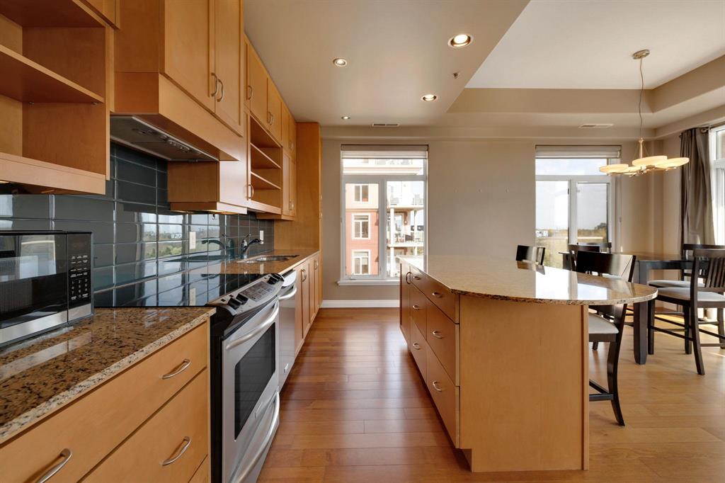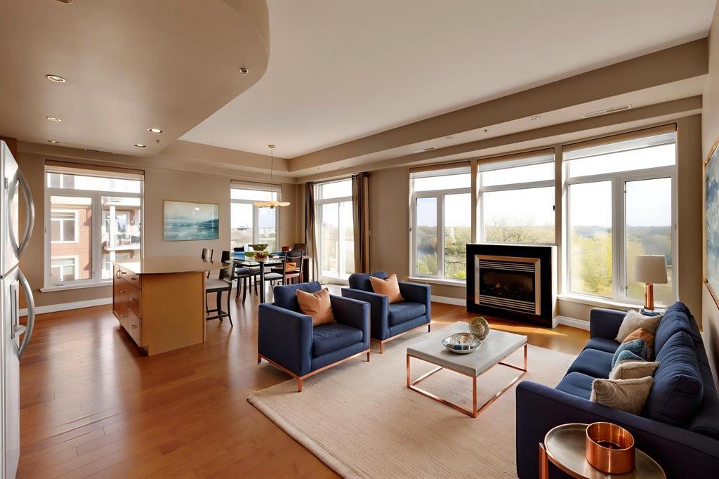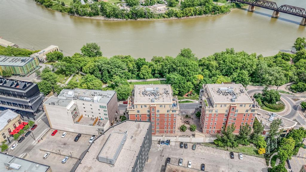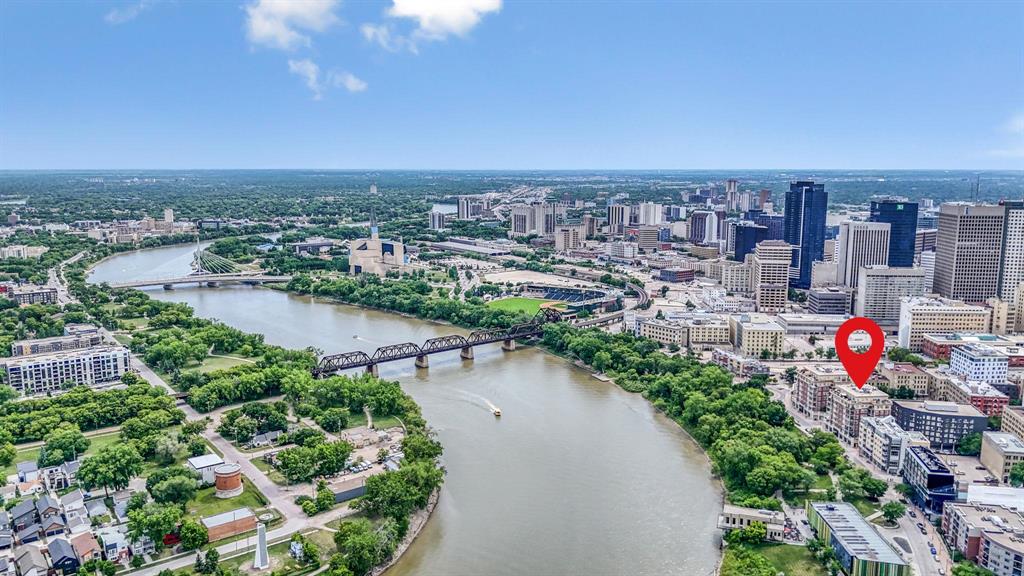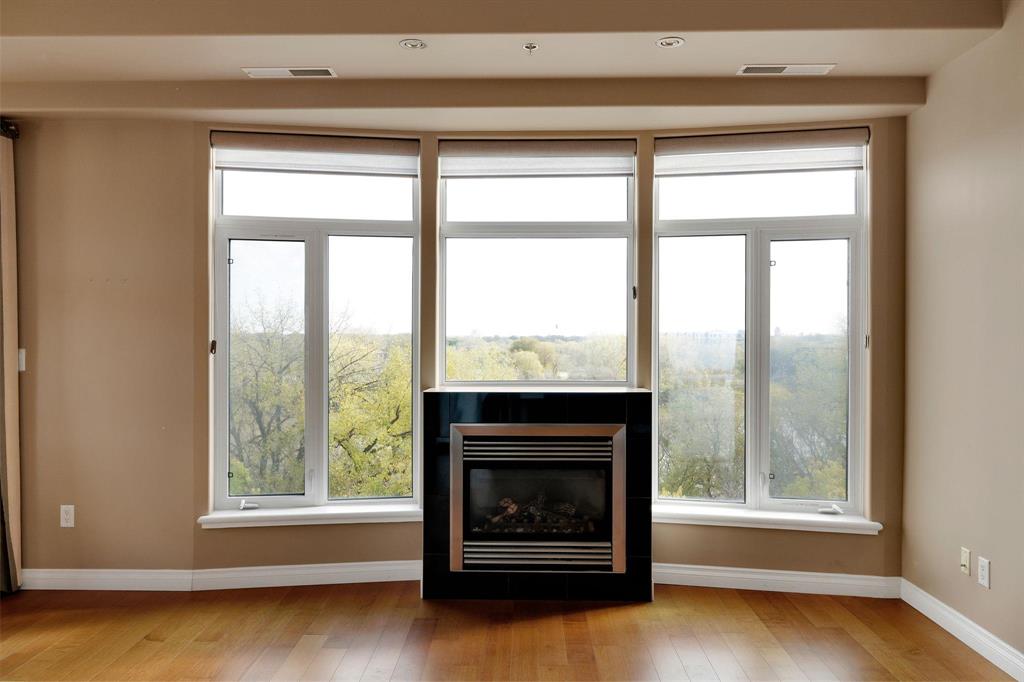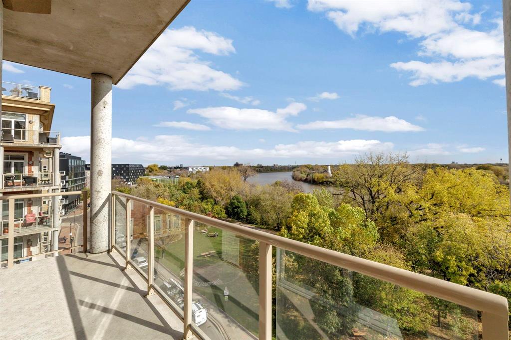 Experience the best of urban living in this bright & immaculate condo located in the heart of the Exchange District, offering amazing panoramic views of the city and Red River. This bright and spacious 2-bedroom plus den corner unit features gleaming hardwood floors throughout the main living area and den. The open-concept design showcases expansive windows with amazing views from every room. Welcoming living room w/gas fireplace, adjoining dining area w/patio doors to the wraparound balcony & a modern island kitchen w/granite counters, tile backsplash, stainless appliances & ample cabinetry. A breakfast bar provides a perfect spot for casual dining. The primary bedroom includes a Juliette balcony, WICC & relaxing 4-piece ensuite w/air tub. Additional highlights include a spacious foyer, in-suite laundry w/storage & a heated underground parking (stall #8), across from elevator. Pet friendly building & professionally managed. Enjoy the shared courtyard with 290 Waterfront & the unbeatable location...just steps to the riverwalk, parks, dining, entertainment & Winnipeg’s top attractions. Nothing to do but move in & enjoy carefree condo living at its finest!