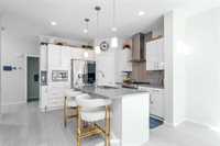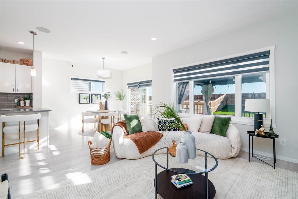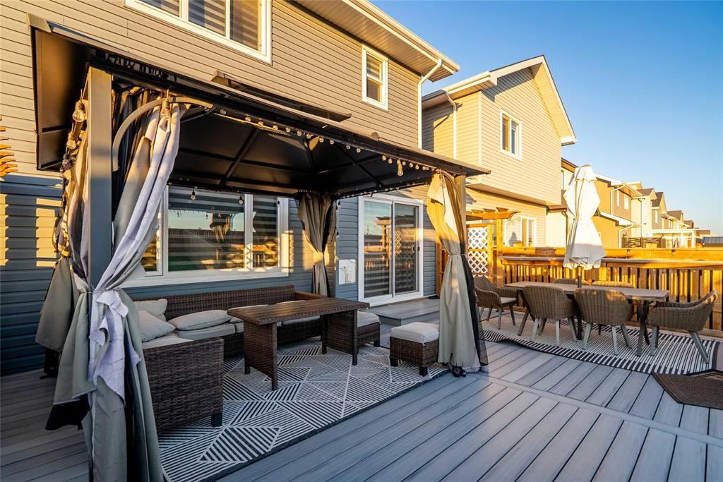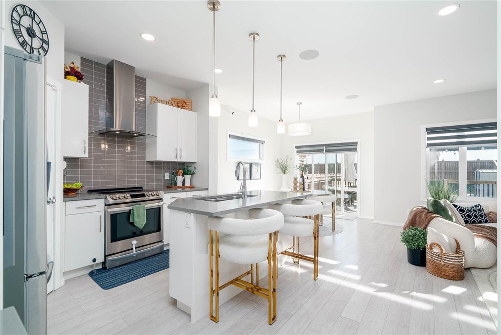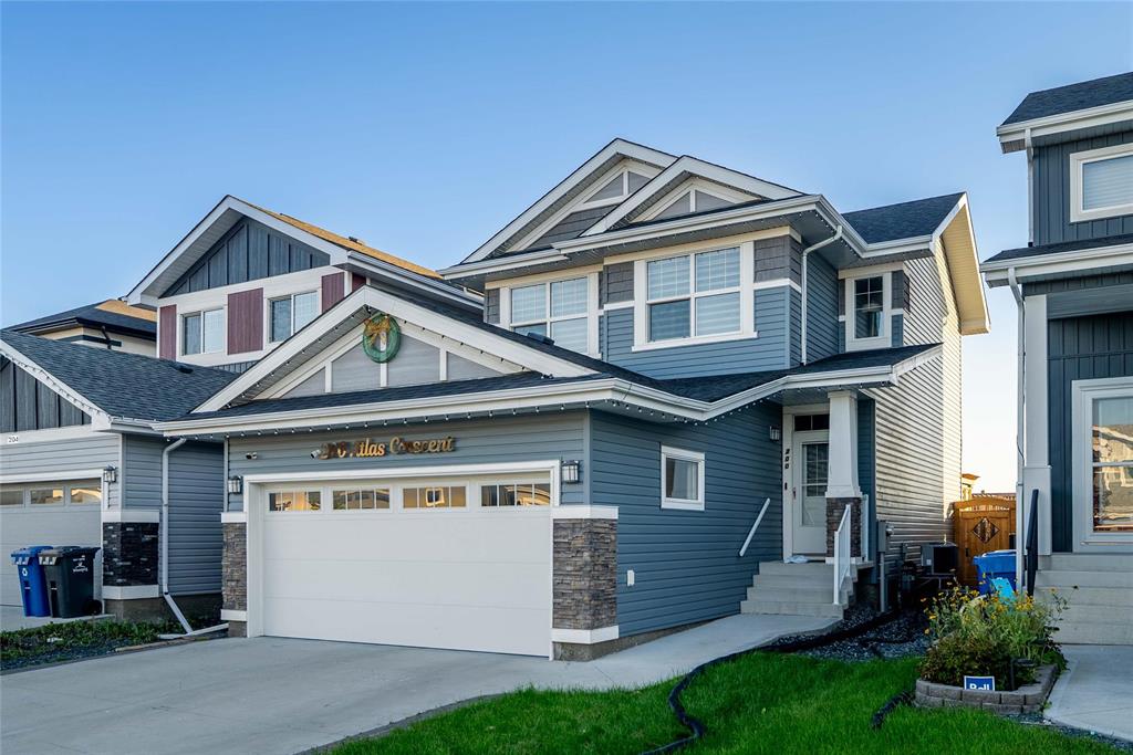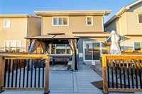 Move-in ready & perfectly designed for family living! Discover 200 Atlas Crescent in the sought-after Aurora at North Point — a 5-bedroom, 3.5-bath home w/ fully finished basement & attached garage. This two-storey offers a bright, open layout w/ huge windows opening to a sun-filled living area w/ a stunning entertainment wall & fireplace & a dining area overlooking the backyard w/ patio access. The chef’s kitchen features quartz countertops, tile backsplash, built-in microwave, stainless-steel appliances, & a spacious island. Upstairs includes 3 bedrooms, w/ the primary suite offers a private ensuite & large walk-in closet. The finished basement adds 2 BR w/ egress windows, a rec room, & full bathroom. Enjoy outdoors in the massive backyard dev't w/ huge composite deck, gazebo, pavers landscaping & fully fenced yard. The attached garage is finished w/ epoxy flooring. More upgrades include central humidifier, sump pump, permanent holiday lights, entertainment wall w/ fireplace, landscaping, lighted address sign, & blinds. Steps to the bus stop, green spaces, trails, parks, & the new K–8 Aurora School opening 2026 — Don't Miss Out!