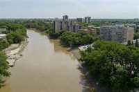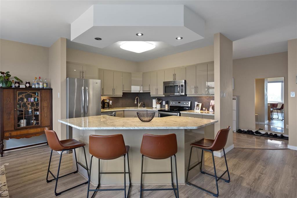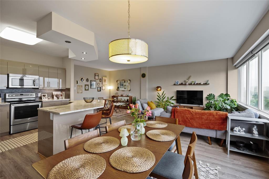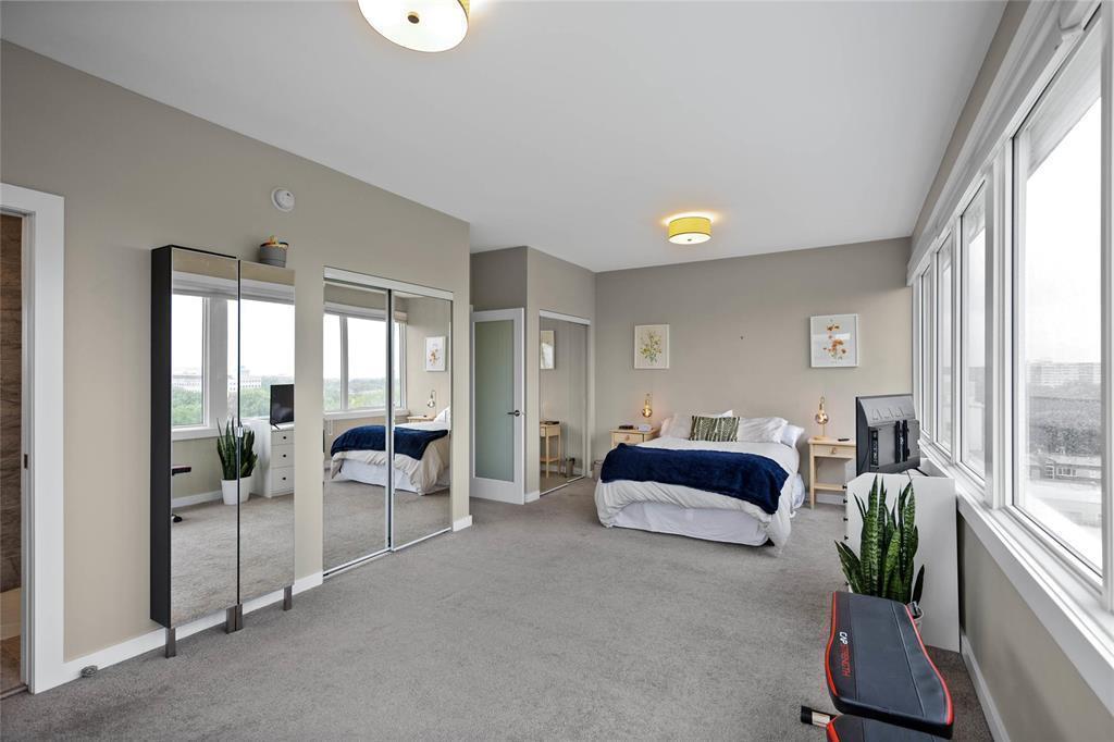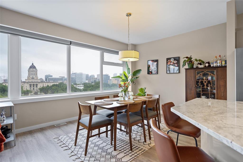 awaits you! Glorious 180 degree views over the Assiniboine River and the Legislative. Wall to wall windows in