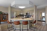 end finishes. A magazine worthy kitchen offers a lrg curved island topped w/timeless quartz countertops,