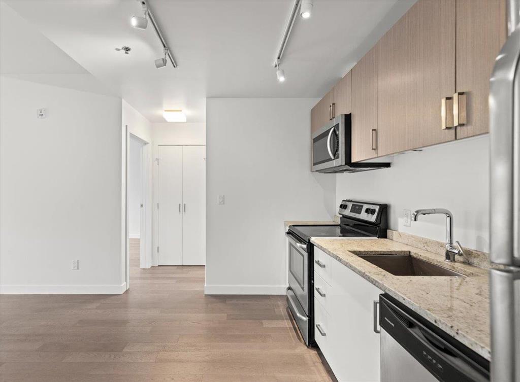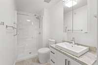 Welcome to MOCO Condominium, located in the desirable Fort Richmond area. This quiet 893 sq ft corner unit features 2 bedrooms, 2 full baths, 2 private balconies & 2 heated parking spots, perfect for modern living. Upgrades include luxury engineered hardwood flooring and stunning granite countertops. This open-concept living room & kitchen are ideal for entertaining, complemented by convenient in-suite laundry, The primary bedroom includes a 3-piece ensuite with a walk-in shower. The building offers elevators & a gym. With its prime location, walking distance to the University of Manitoba, restaurants nearby, transit options, stadium, and all essential amenities, this home is perfect for a modern lifestyle.