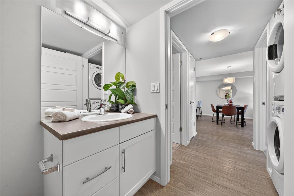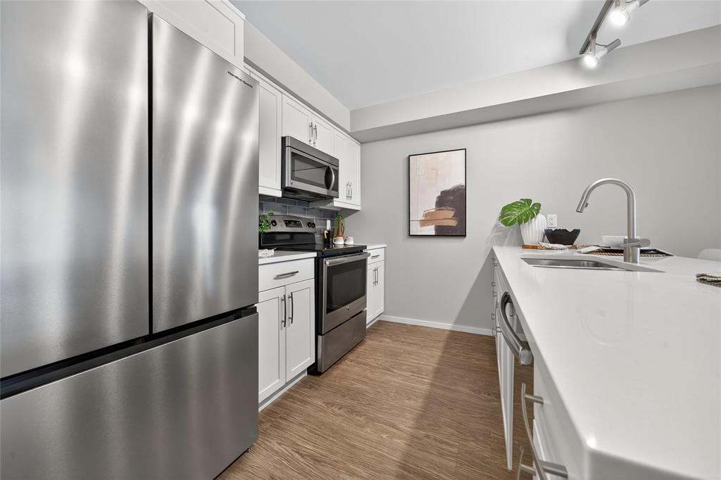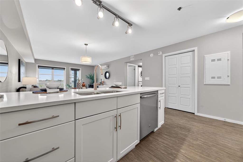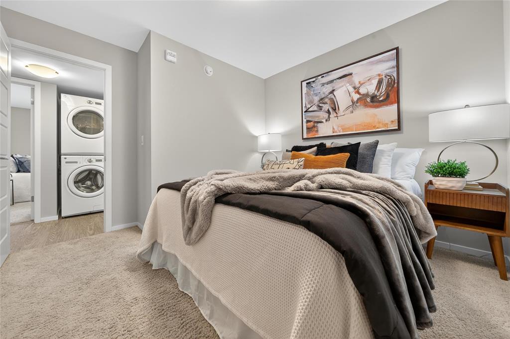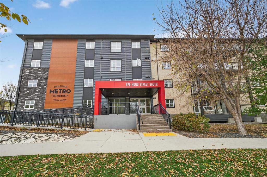 **OPEN HOUSE CANCELLED (CONDITIONALLY SOLD)** || THE METRO CONDOMINIUMS || Built in 2017, this modern 806sqft 2 bedrm, 1 bathrm unit in Fort Rouge is centrally located near shopping, restaurants and it's just STEPS to the RAPID TRANSIT BUS STN! Situated on the 3rd FLOOR, this unit has a bright open-concept layout w/luxury vinyl plank floors & neutral paint throughout. You'll enjoy warm sunsets on your SUNNY SOUTH WEST 5'x9' BALCONY! The fantastic white kitchen has a big island w/QUARTZ COUNTERTOPS, room for some barstools and comes with SS Appliances (Fridge 24). Both bedrms have cozy carpeting, double closets and are a generous size. The convenient IN-SUITE LAUNDRY is just next to your 4pc bathroom. UNIT #303 comes with a 19sqft STORAGE LOCKER located on the SAME FLOOR, and 1 x UNDERGROUND PARKING SPACE + there's tons of VISITOR PARKING for guests. CONDO FEE: 329.97/mo incl: PARKING & WATER. Hydro approx $50/month. The building is PET FRIENDLY (1 per unit), has 2 x ELEVATORS, a GYM, a PARTY ROOM, ACCESSIBILITY FEATURES (wide halls & front ramp), SECURE ENTRY and a MAILBOX AREA w/CANADA POST BOX for larger deliveries. Nothing to do but move-in and enjoy! || WATCH THE VIDEO TOUR || Offers as Received