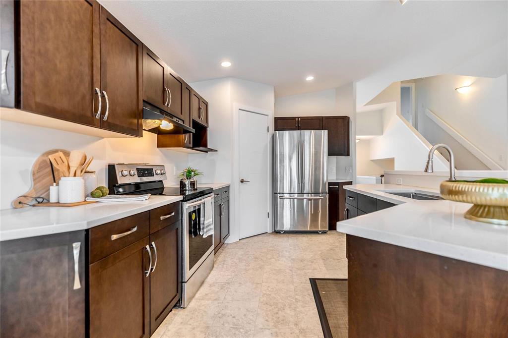 SS now. Offers As Received. OH Sunday 2PM-4PM.Welcome to 492 Stan Bailie Drive! This beautiful 1,666 sq.ft. cabover home offers a bright, open-concept design perfect for modern family living. The main level features a stylish kitchen w/ upgraded quartz countertops (2021), SS appliances, a spacious dining area and a warm family room centered around a cozy gas fireplace. Two well-sized bedrooms, a full bathroom & a versatile loft area—ideal for a living room or home office—complete the main floor. Upstairs, you’ll find an enlarged primary bedroom w/ a private ensuite(double vanity), offering a quiet retreat for your comfort. The home also features an expanded attached garage w/ a convenient side door. The front entrance provides access to the basement, w/ laundry located just beside the garage door. The bright basement, w/ Huge windows typical of a cabover design, offers excellent potential for future development. Located in a family-friendly neighborhood, just a short walk to public transit & a dual-track elementary school offering both English & French Immersion programs. With its thoughtful layout, modern finishes, and well-maintained condition, this home is truly move-in ready