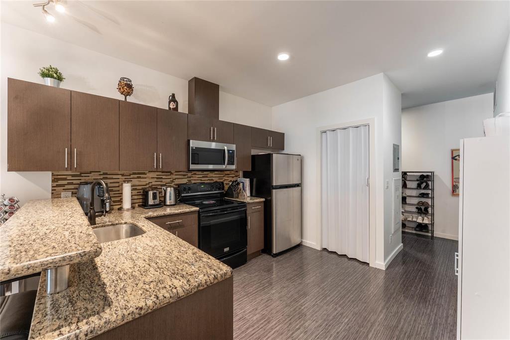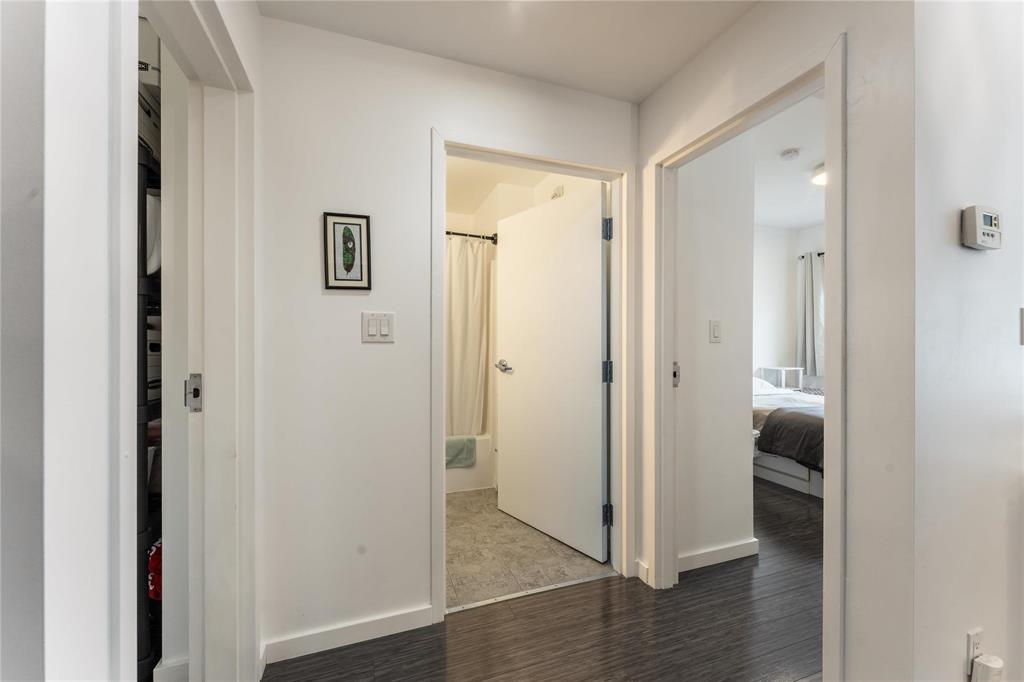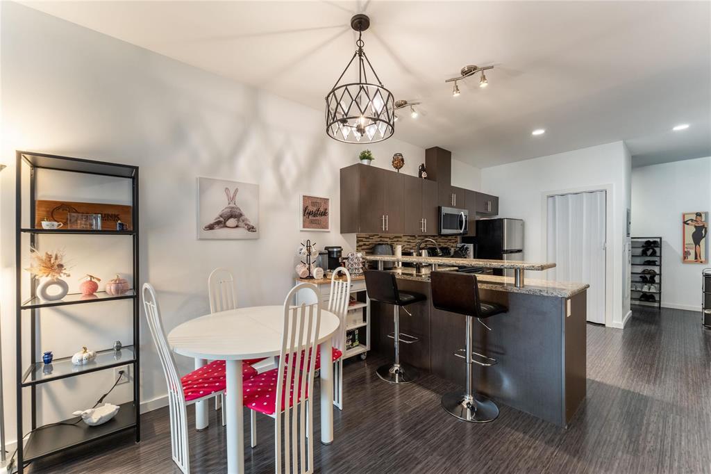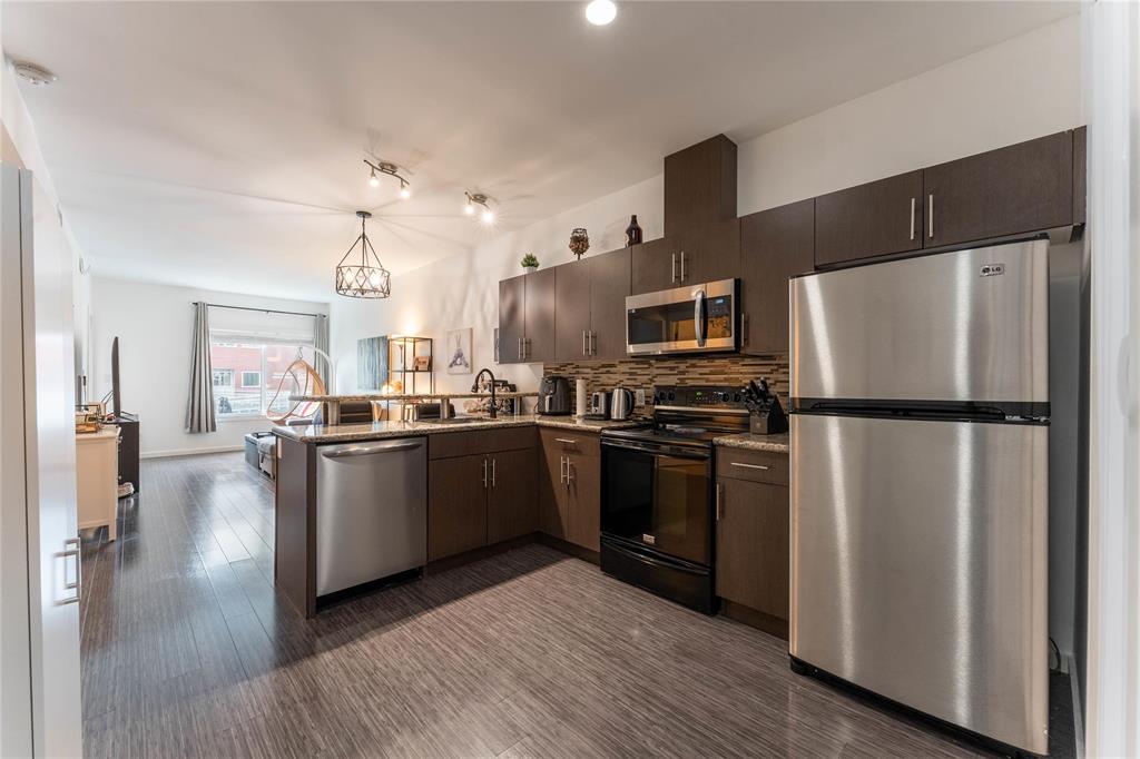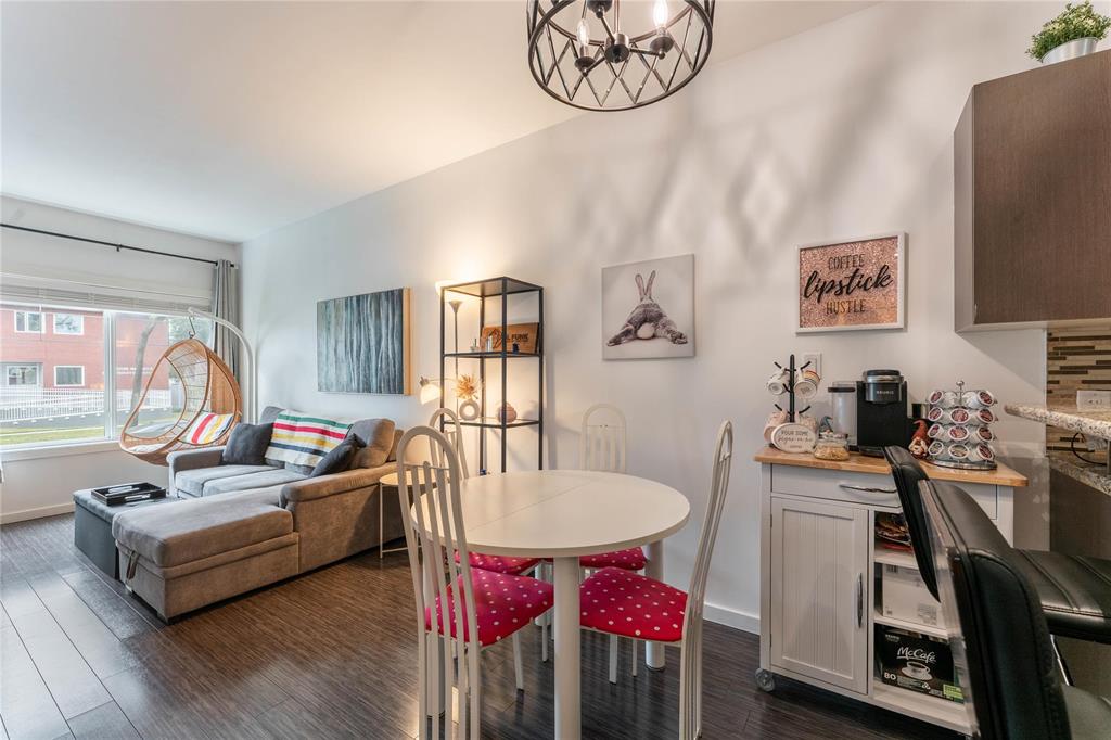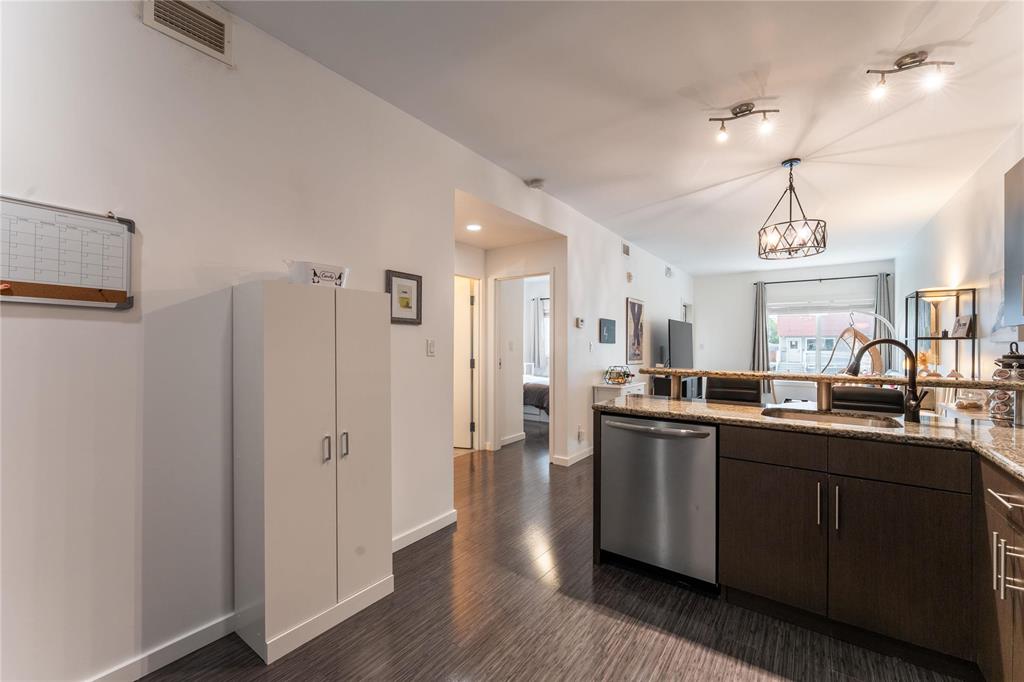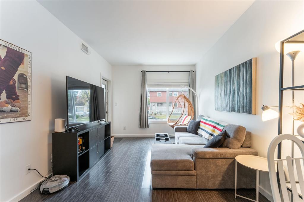 SS Oct 16. OPEN HOUSE Sunday Oct 19 1-3PM. Offers reviewed the evening they are received. Modern, pet-friendly, and packed with perks, this 2-bed, 1.5-bath, 900 sq ft main-floor condo in North Kildonan is the perfect fit for first-time buyers, couples, or anyone craving a low-maintenance lifestyle. Stylish and functional, the unit features a bright open-concept layout with laminate flooring throughout the spacious living and dining areas, large south-facing window with custom blinds, and patio doors leading to a private balcony. The kitchen offers granite counters, stainless steel appliances - incl dishwasher (2022), plenty of cabinet space, and a breakfast bar for casual dining. Both bedrooms are generously sized, with the primary featuring a walk-in closet. You’ll also love the convenience of in-suite laundry with an updated washer and dryer (2023), covered parking, secure entry with cameras, and a dedicated storage unit. Located close to transit, schools, parks, and shopping, plus Cottage Bakery + Eatery is right across the street, this one has everything you need.