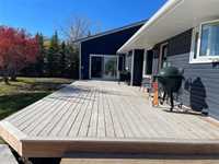 Stunning updated contemporary 1776 sq ft bungalow retreat on 3.48 acres, with room to roam, on your own walking trails, & back acre pond! Enjoy gardening, wildlife & quiet nights only a few minutes away from the growing town of Sanford. Three bedrooms, two baths, large main floor laundry, with front load washer, dryer, freezer & ice machine! Your updated kitchen offers a large food prep area, sleek newer SS appliances, high end lighting, flooring & windows and metal roofing! Large front foyer and welcoming dining area spills into the comfy family room with picture windows, with both front and backyard views! Extra large 19 x 19 primary bedroom is fit for royalty, with a large 5 piece ensuite awaiting final finishes. For someone who wants to take in the outdoors, slip out through generous patio doors, in the PB onto a large deckspace, perfect for BBQ'ing & bird watching. The convenient breezeway, connects the house to the double 27 x 23 garage. Out into the backyard, past the newer metal roof, shed & heat pump, lies the tranquil pond. The basement awaits your custom design plan, with room for a future bedroom, bathroom and future rec room area. Come take a look!