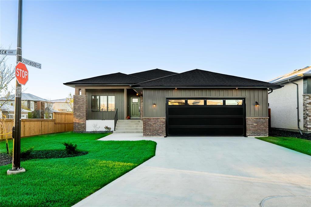 Brand new fully custom built home that has it all and more. Covered patio welcomes to sit and enjoy beautiful views. View of Iconic Harte Trail from living area in beautiful & serene Scotswood Meadows in the heart of Charleswood.A stunning custom-built home with spectacular & tastefully done interiors & exterior with façade of red brick, board batten Hardie with stunning curb appeal and beautifully landscaped front yard straight out of a story book. Premium finishes throughout the house with huge windows basking the home with natural light and designer light fixtures throughout. Massive Island with quartz and abundance of cabinetry, a huge dining room, living room with a stunning linear fireplace and gorgeous TV wall, primary bedroom with spa like ensuite, huge WIC, privately tucked. Oversized dbl garage. Mud room and laundry with herringbone tiles directly off the garage entrance ideally situated for easy everyday use. Massive basement footprint with huge windows ready for your personal touches and development. This home is designed for both luxury and durability, remarkable designs with quality material built to last. Spectacular beauty is a must see, rarely offered. Available for quick possession.