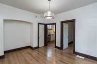 Looking for a starter home or a fabulous investment opportunity? Look no further! This charming 1.5-storey home beautifully combines classic character with modern functionality. The main floor features a bright and welcoming living room, a spacious dining area, and an updated kitchen complete with stainless steel appliances and a stylish tile backsplash. You’ll also find a convenient 3-piece bath with stacking laundry, a large mudroom off the back entrance for extra storage, and a versatile main-floor bedroom that could serve perfectly as an office or guest room. Upstairs are two additional bedrooms and a 4-piece bath with tile surround. The basement offers ample storage and potential for future development as a rec room. Outside, enjoy the fenced yard, parking area, and an inviting front porch. Major updates include electrical (knob & tube removed), PVC windows, high-efficiency furnace, central air, and hot water tank.