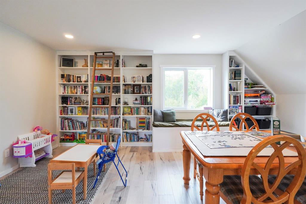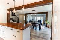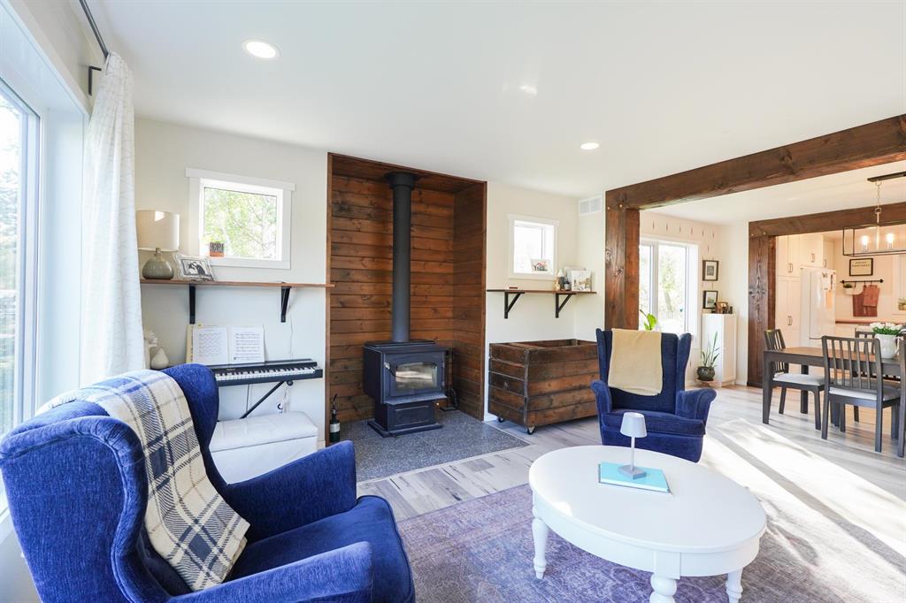 Step into this stunning 2-story, 2,447 sf modern country home where rustic charm meets contemporary comfort. Warm timber accents and natural light welcome you the moment you enter. The open layout flows seamlessly, featuring 3 spacious bedrooms and 2.5 baths. Gather around the cozy wood-burning stove or unwind in the massive rec room lined with floor-to-ceiling bookshelves — perfect for relaxing or entertaining. The bright kitchen and dining area invite connection, framed by large windows showcasing the beautifully manicured yard. Outside, enjoy peaceful evenings around the fire pit or host friends on the expansive timber-covered deck. A large attached garage provides plenty of space for vehicles and storage. This home perfectly captures the warmth and elegance of modern country living.
