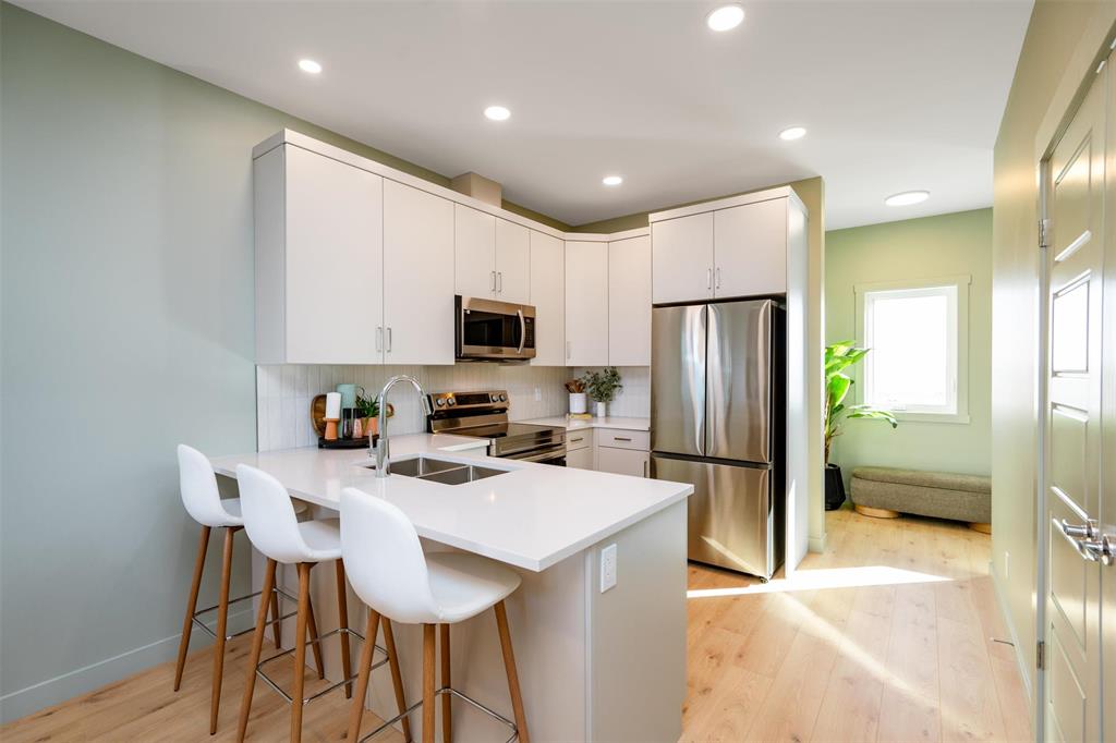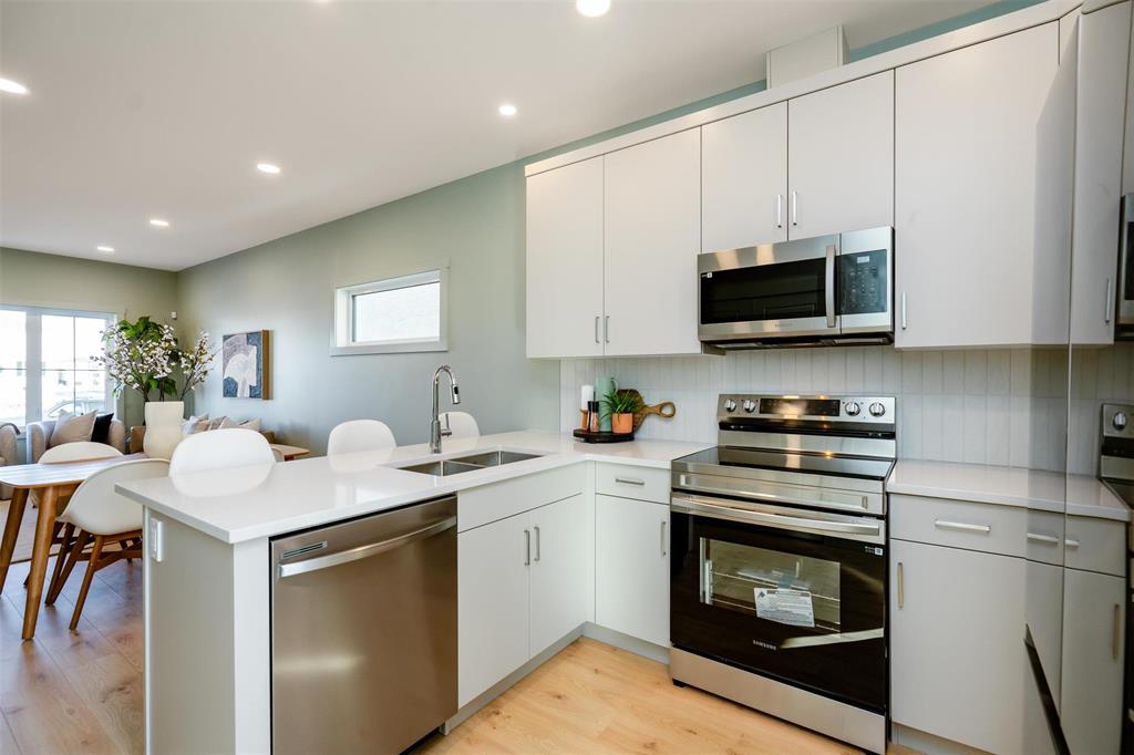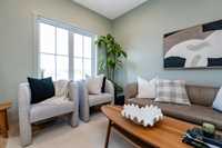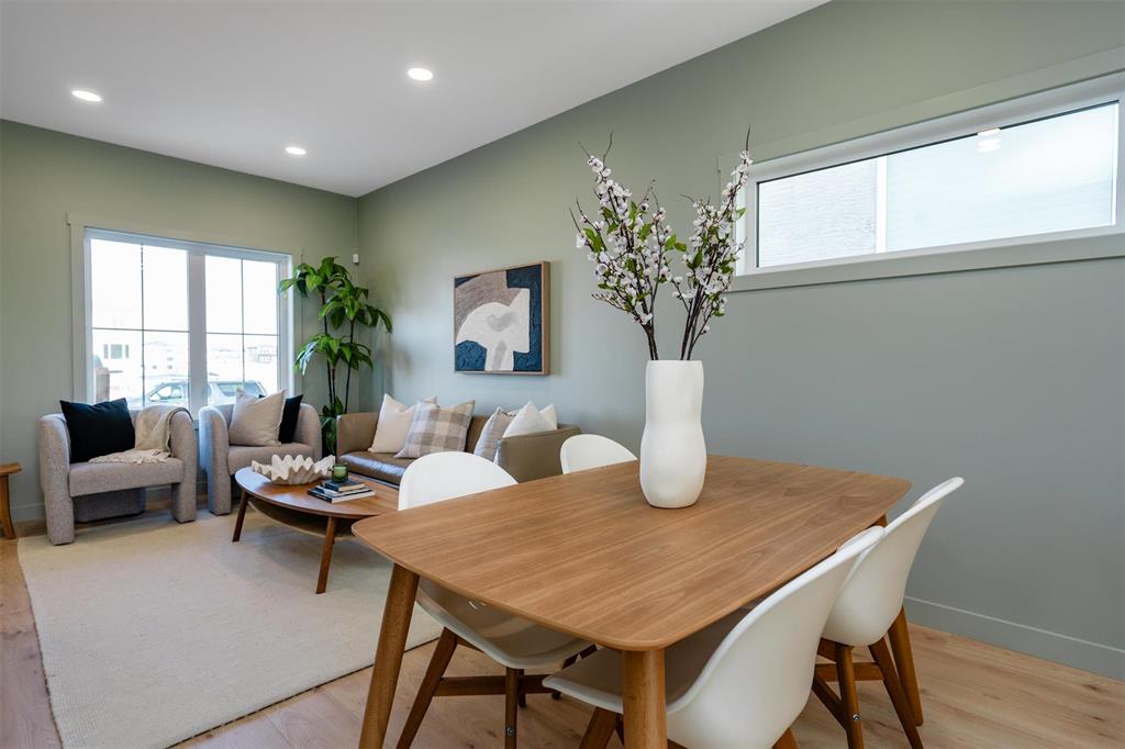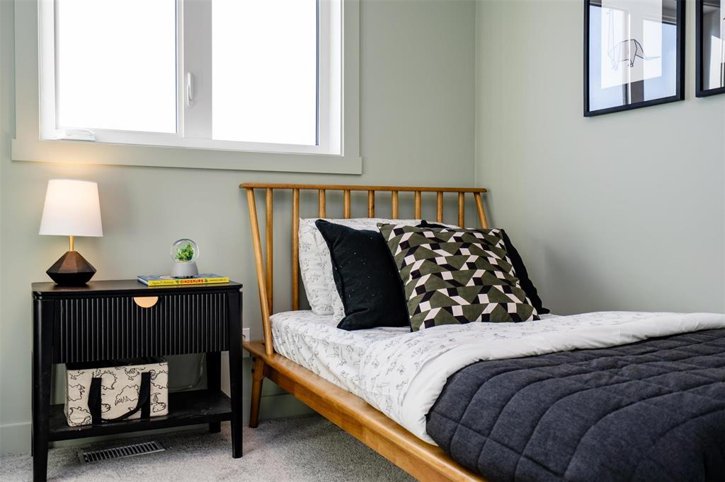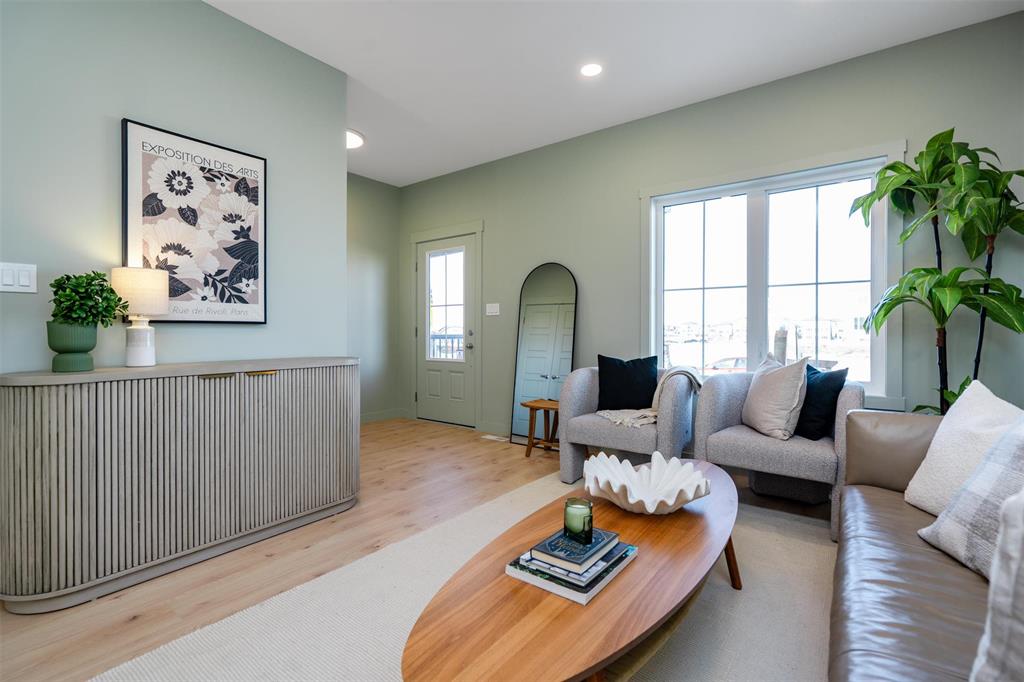First Time Homebuyers may be eligible for a GST Rebate! Welcome to The Focus, a beautiful two-storey detached home offering 1,400 square feet of thoughtfully designed living space. As a former Daytona Homes showhome, this residence highlights exceptional craftsmanship and a serene Japandi-inspired interior that blends minimalist design with natural warmth. Step inside the bright and welcoming foyer, where 9-foot main floor ceilings create an airy sense of space. The open-concept layout flows seamlessly from the spacious great room to the dining nook and modern kitchen, forming the true heart of the home. The kitchen features a convenient pantry, an extended eating bar, and sleek finishes that make it ideal for entertaining or everyday living. A discreetly placed moody half bath and storage closet are tucked at the rear of the home for added privacy and function. Upstairs, you will find three cozy bedrooms, including a relaxing primary suite with a walk-in closet and an ensuite featuring a window that fills the space with natural light. A well sized laundry room is also conveniently located on this level. All furnishings are negotiable for those seeking a turnkey lifestyle with timeless design.