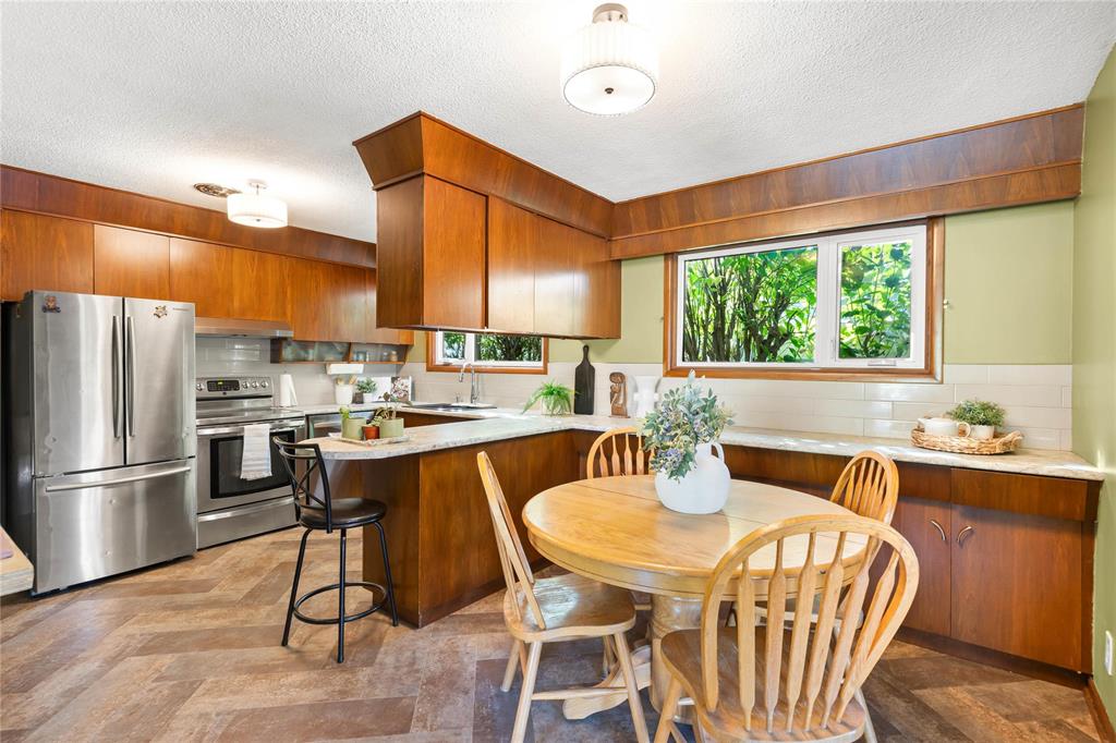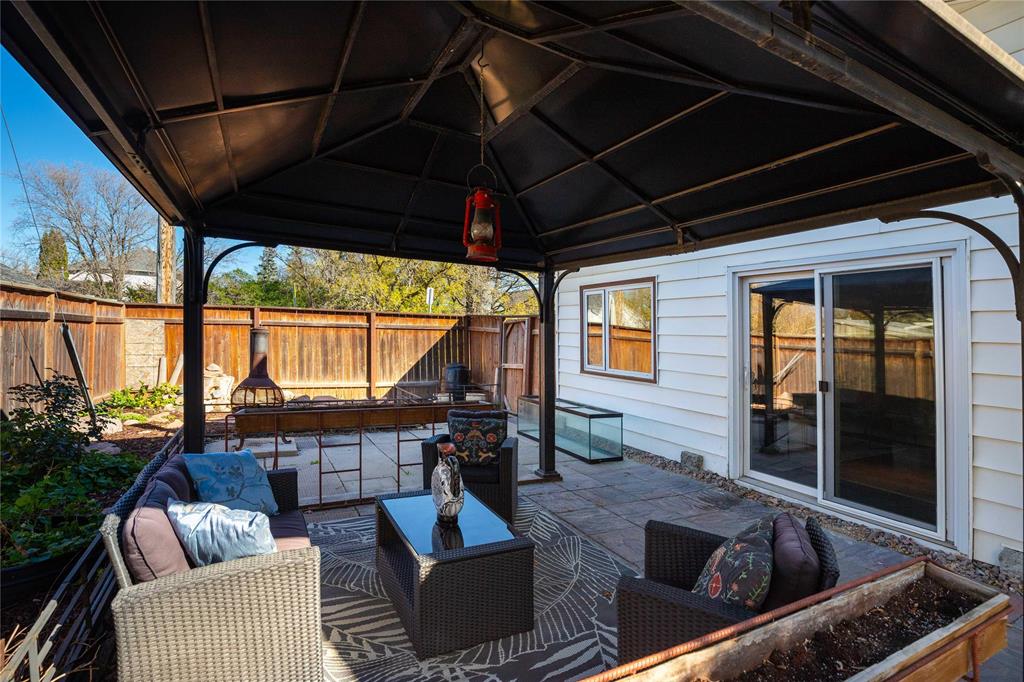 Offers Mon Oct 20th. Tastefully updated & remodelled 3bdrm 2bthrm home walking distance to parks, schools, public transportation & all amenities. Step inside to hrdwd flooring('15) in the main living room w/picture window letting in an abundance of natural light. Updated eat in kitchen features plenty of counter & cabinet space, coffee bar, vinyl tile flooring, newer countertops, granite sink, dining area & all SS appliances incl. Great room features LVP throughout w/2 seating areas (1 could be used as formal dining) electric fireplace and patio doors leading to your fully fenced backyard, storage shed & 24x14 patio w/gazebo. 3 Spacious bedrooms offers ample closet space & plush carpeting('25). Remodelled 5 pc bthrm('19) w/tile flooring, tile backsplash, double vanity & custom tile tub surround. Basement consists of generous size rec room w/large windows, 3 pc bathroom updated in 2016, laundry room & plenty of storage. Additional features & upgrades: Hi eff furnace('19), Shingles & eaves('15) central a/c, newer exterior doors, aluminum soffit & fascia, pvc windows throughout, fresh paint throughout. Meticulously maintained by same owner for past 35 years.
