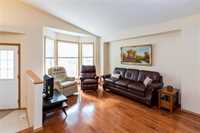 Showings start Oct. 18/25. Offers Oct. 24/25. Seldom offered! Beautiful raised bungalow situated on a quiet street and backing onto a lovely lake! Enjoy the fantastic lake views from your kitchen, primarily bedroom or screened in gazebo! This well kept home offers a gorgeous living room dining room combination with gleaming hardwood floors and vaulted ceilings. Functional eat-in kitchen features a lighted pantry, room for a large kitchen table, stainless steel fridge, stove, dishwasher, hood fan which are included and has patio doors to the gazebo and deck. The spacious primary bedroom has a large clothes closet and newer 3 pce ensuite. Handy main floor laundry with the washer and dryer included. Professionally finished lower level offers space and privacy for the whole family. Featuring a large 4th bedroom or home office and work shop area. The backyard is fully fenced and is nicely landscaped. Double attached garage with direct entry to the home. Don’t miss this one! Call for your appointment today.