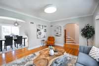 Offers Oct 22nd - OPEN HOUSE SUN 19th 2:00-4:00pm - ELEGANCE & WARMTH in this solid, beautifully maintained, approx. 1222 sq. ft. two-storey that blends original character with smart updates in one of Winnipeg’s most sought-after neighbourhoods. Step into a spacious living room with bay windows, coved ceilings & a centrepiece electric fireplace. Formal dining flows through graceful archways into a bright kitchen with wraparound cabinetry, newer SS appliances & cozy eat-in bar. Upstairs offers 3 well-appointed bedrooms, including a generous primary with custom closet doors. The 4-pc main bath is crisp & modern with tiled surround. Downstairs, a finished, rec-room with a unique larger than egress sized window, 2nd full bath, laundry area & excellent storage provide flexible living. Outside enjoy a large deck, mature trees, private yard, newer 14'x21' garage (12) & an additional parking spot. Updates include: most windows, kitchen appliances (22), shingles (22), A/C (20), electrical (18), back fence (25). This is the complete package, a warm home in the heart of River Heights on a charming, tree-lined, family-friendly block just steps to parks, schools, Corydon shops & transit.