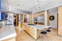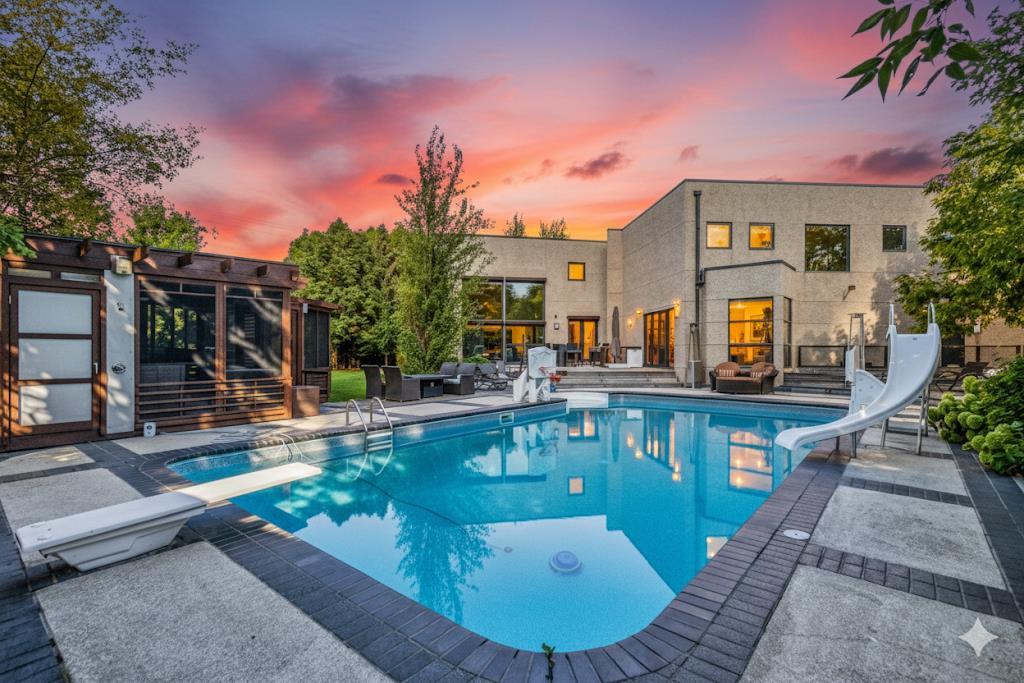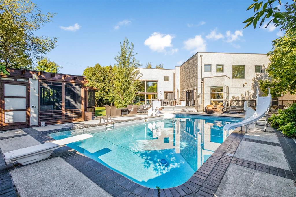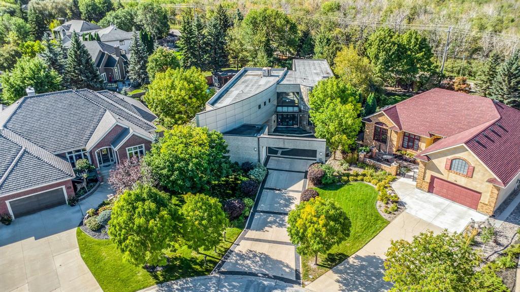 A true architectural masterpiece custom built by Art Gross Builders, this one-of-a-kind Tuxedo home offers over 4,200 sq ft of exceptional design and craftsmanship on an 18,932 sq ft lot. The grand foyer with double glass doors, soaring ceilings, and Carrara tile flooring sets the tone for the elegant interior. Sunken great room with feature wall, custom media unit, and floor-to-ceiling windows overlooking a spectacular backyard oasis with pool, deck, outdoor kitchen, and screened gazebo. Gourmet Beechwood kitchen with Wolf cooktop, Sub-Zero fridge, dual dishwashers, double ovens, stone island, and built-in bar. Main floor office, mudroom, and 2-pc bath. Upstairs features a private primary suite with fireplace, dual walk-ins, spa-style ensuite with steam shower & air tub, plus 3 additional bedrooms each with built-ins and baths. Finished lower level with media room, gym, and guest suite. Triple attached garage. Steps to Assiniboine Forest—an incomparable Tuxedo retreat!