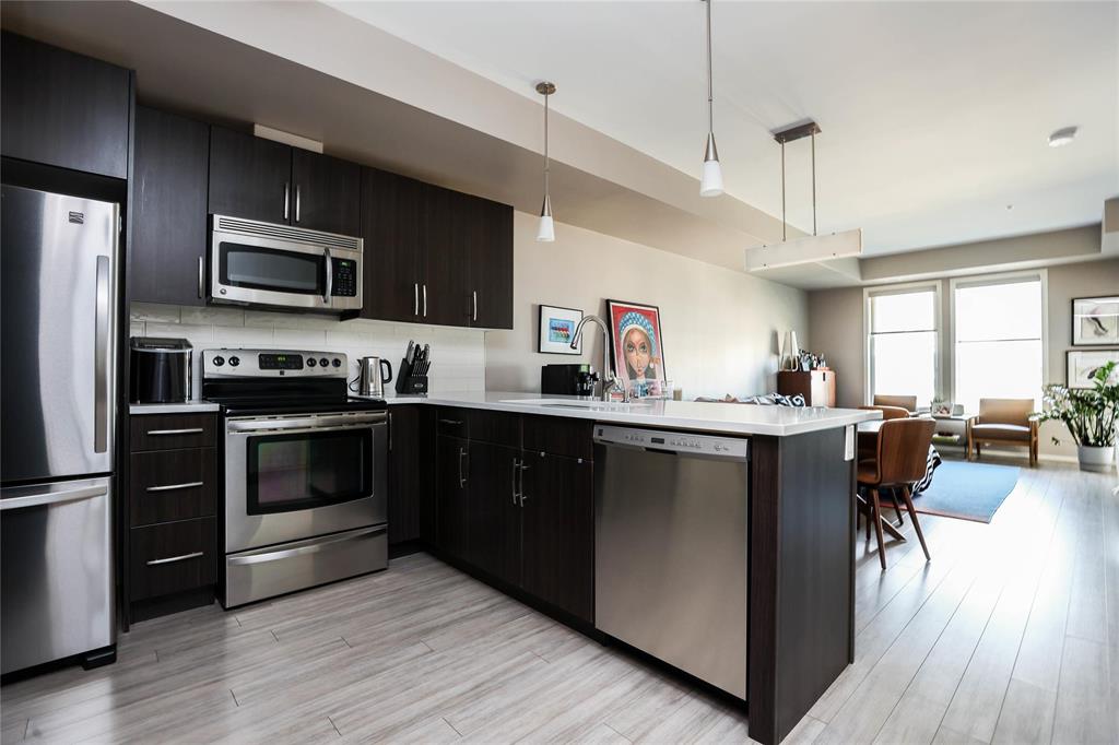 SS now! Offers as received. Located in the vibrant heart of St. Boniface, close to The Forks, downtown, and all the exciting amenities the area has to offer, this pet friendly condo offers the perfect blend of convenience, comfort, and style. This spacious updated 970 sq ft top-floor suite offers a spacious bedroom with a walk-through closet, a full 4-piece bathroom, while the versatile den can serve as a home office or guest room. The open-concept design features a sleek kitchen with stainless appliances, an eating bar and quartz countertops, spacious dining and living area, and a large balcony with sunny, serene views of the park and river! Additional highlights include in-suite laundry for your convenience, central air conditioning, and heated inground parking (with EV charger) to keep you comfortable year-round. Enjoy high-quality finishes, modern colors, and a pristine condition that feels like new! The Verve Tache offers great onsite amenities including a gym, party room, storage locker, plus a breathtaking rooftop patio with panoramic views of downtown, the river, The Esplanade Riel & the Canadian Museum of Human Rights. Don’t miss out on this fantastic opportunity to call it your new home!
