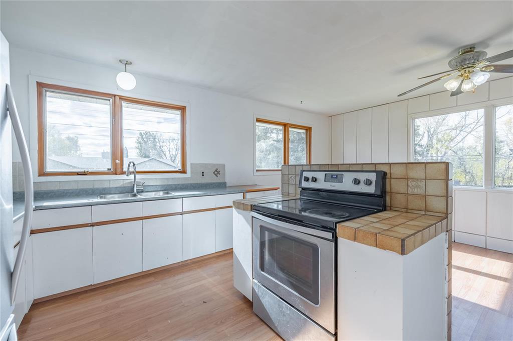Rare opportunity to own a massive 100' x 375' lot within city limits, offering endless potential for development, investment, or creating your dream backyard retreat. This solid 1,532 sq ft bi-level home features 3 spacious bedrooms, 3 full baths, and a bright 14'x22' three-season sunroom. The main level is filled with natural light and includes a large living room with a wood-burning fireplace, a kitchen that overlooks the dining area, and a generous primary bedroom with a 3-piece ensuite. Two additional bedrooms and a 4-piece main bath complete the upper floor. The lower level offers a fourth bedroom, a large rec room, a workshop area, a third full bath, and ample storage space. The home is solid and offers a great opportunity to update and personalize. Outside, enjoy the expansive yard with mature trees, two sheds, and a well used for garden watering. A unique property with room to grow, perfect for families, hobbyists, or developers!