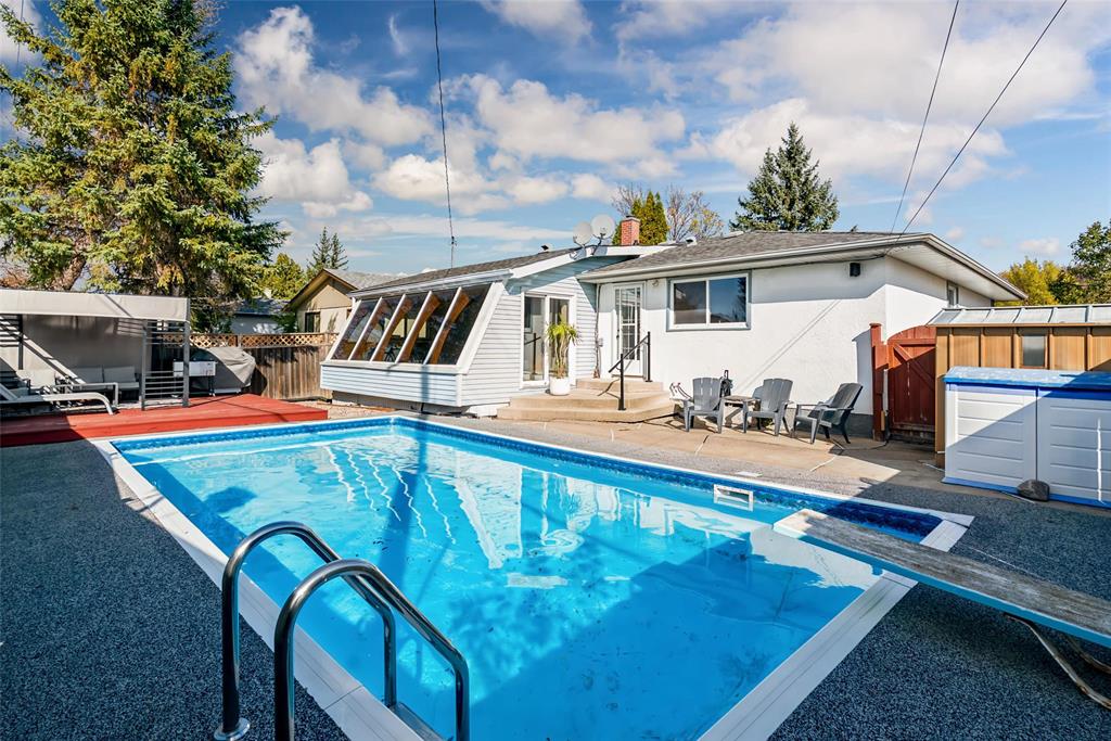 Offers anytime - a GREAT opportunity! OASIS ALERT! Spacious 1,440 sqft bungalow featuring 3 bedrooms, 2 bathrooms, a four-season sunroom, and a backyard retreat with an inground pool. The tour begins with an open-concept layout that flows seamlessly from living to dining to kitchen — creating a warm, inviting space for family life or entertaining. Much of the main floor has been updated with luxury vinyl plank flooring, beautifully complimented by a newly renovated four-piece bathroom. Three spacious bedrooms complete the main level, including a primary suite with private powder room and access to the show-stopping four-season sunroom. This inviting space offers year-round enjoyment with huge windows overlooking your private backyard retreat — complete with an inground pool, raised deck, and plenty of room for family fun or summer gatherings. Downstairs, the finished basement features a large rec room/flex area & additional space ready for future development, including a rough-in for another full bathroom. All of this set on a quiet street in sunny St. James, just steps from schools, parks, & community clubs — & close to shopping, dining, & major routes. Don’t wait — schedule your showing today!