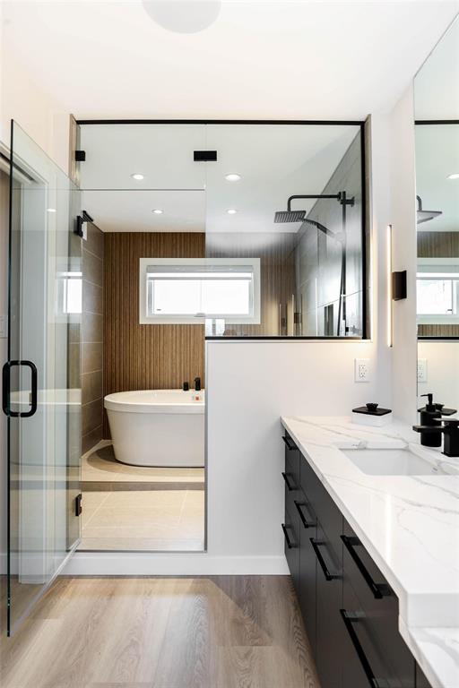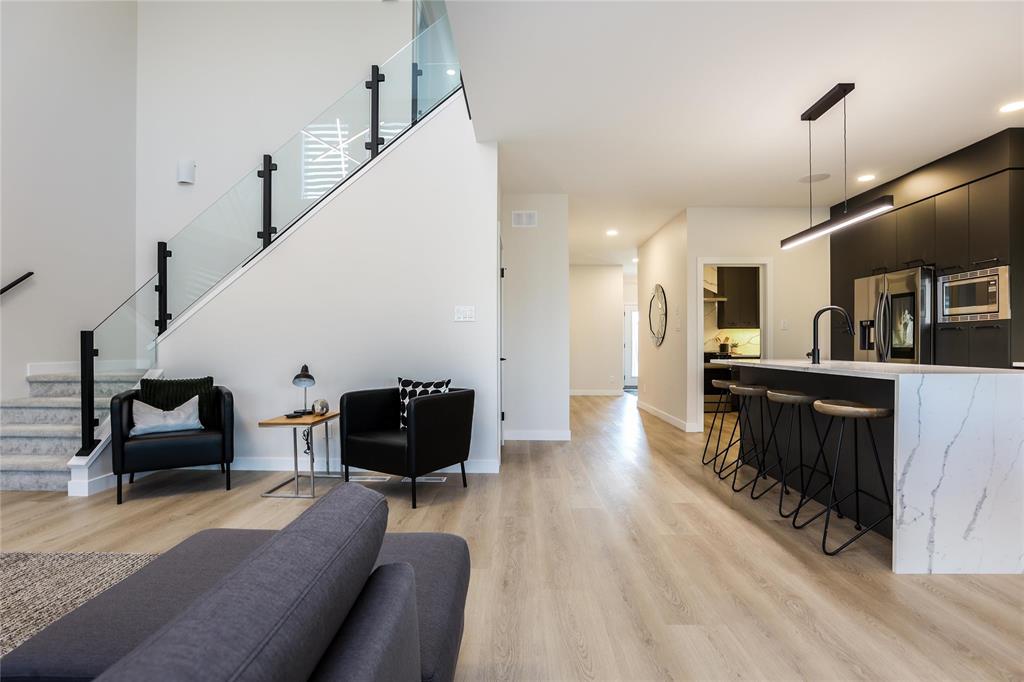 Limited time promo - Free appliances and AC **Eligible first-time home buyers could take advantage of a rebate on the purchase price and it will be around $42,495** Step into luxury with this impeccably designed home in the heart of Highland Pointe. The Fresco IV model at 168 Nuthatch Bay showcases 2,303 sq ft of elegant living space, combining contemporary style with practical features for modern family life. This stunning 4-bedroom, 3-bathroom custom home features a main floor bedroom & full bath, open-to-above living room, and dual kitchen setup with a full spice kitchen. Enjoy upscale finishes like quartz counters throughout, SPC flooring, black plumbing fixtures, black hardware, glass railings, and a feature fireplace wall. The primary suite boasts a tiled dual shower wet room, soaker tub, dual sinks, and a custom walk-in closet with LED mirror. Added perks include AC, appliance package, 200 Amp service, and landscaped front yard. oversized garage, piled foundation, and triple-pane windows. High efficiency Eco Package. Enjoy a peaceful suburban setting backing onto a forested/park space, with easy access to schools, parks, shopping, and amenities. Move-in ready luxury! Book your showing today!