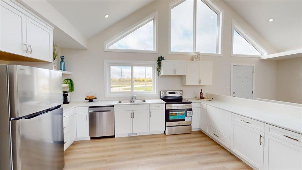 Life is more relaxed near the lake! - enjoy summer listening to the waves on the beach wihch is a short stroll away. Yes the latter part of the year is upon us... make the best of it especially in the winter - snowmobile out your door for some Ice fishing excitement The home - stunning 1272 sqft. 3 bedroom 2 bath open concept layout in the main area allowing all to gather and enjoy.. Open the garden doors on the front of the home and allow entertainment to flow out on the large front deck where you will enjoy your morning coffee sitting and basking in the sunrise coming up off the lake in the distance. Enjoy all the details of this home - large primary bedroom to one side of the home with walk in closet and three piece ensuite - two additional bedrooms on the opposite end balance out the space. Vinyl Plank flooring through the home, Large APPLIANCES INCLUDED. The home sits on a crawl space with easy access for seasonal storage. Be the first to move in and enjoy living in a great community a short drive from Gimli, Arborg and Riverton - The golf course also a short drive away. Dont let this one slip by! Measurements +/- jogs.