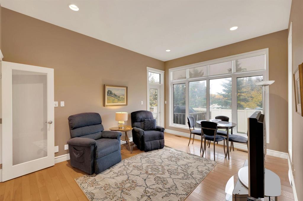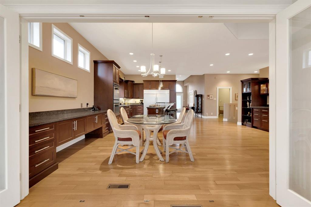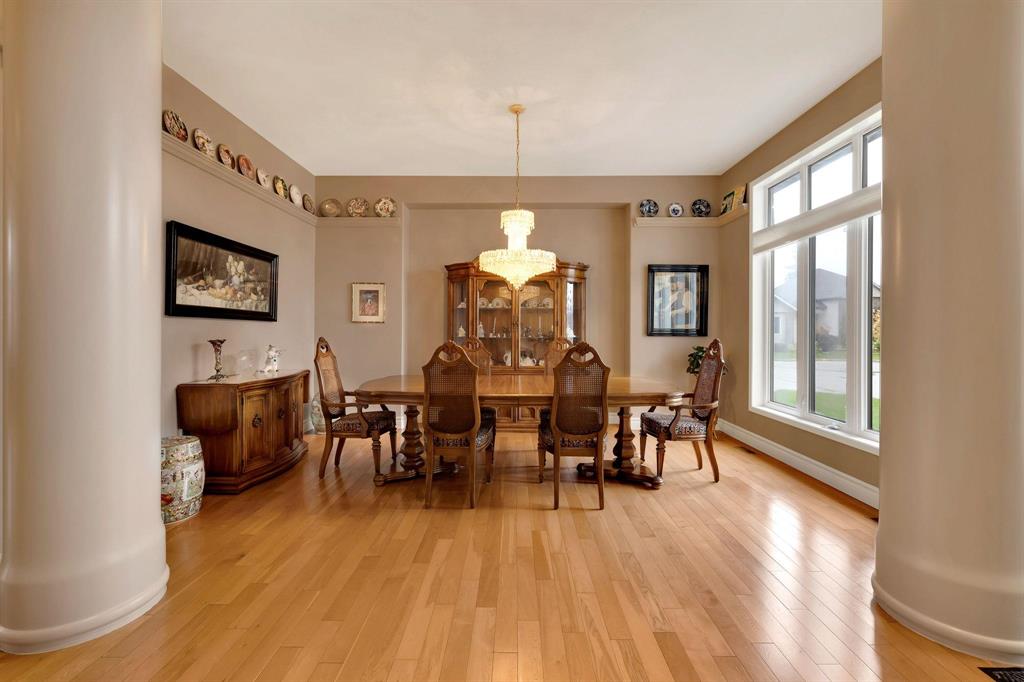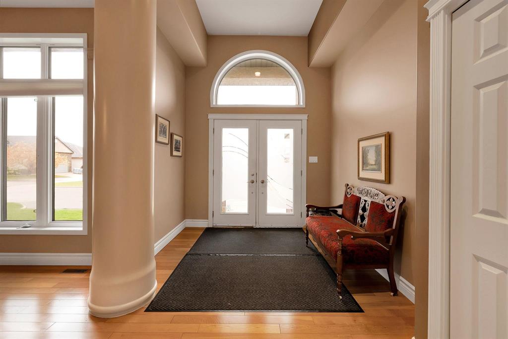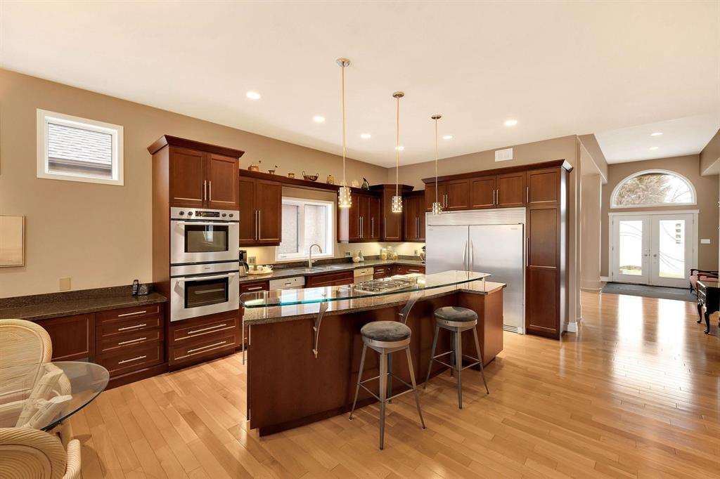 Immaculate & grand! This stunning home in the prestigious neighbourhood of Foxborough Cove offers elegance, comfort & exceptional design. An inviting foyer gleaming hardwoods & high ceilings sets the tone for this impressive condo. The formal dining room features elegant pillar accents & floor-to-ceiling windows, while the LR showcases a gas fireplace framed by expansive windows overlooking the deck. Perfect for entertaining, a dry bar with glassware storage & display compliments the space. The spacious eat-in kit boasts ample cabinetry, tiered island with breakfast bar & gas cook top. Bosch high-end stainless steel appliances. A 4-season sunroom with bi-fold glass doors extends the living area to the deck. The private primary suite offers a spa inspired 5-piece ensuite & WICC. A 2nd bedroom, 3-piece bath, laundry & mudroom complete the main level. The fully finished LL is an entertainer’s dream w/high ceilings, expansive rec area, 3 additional bedrooms...including a perfect nanny or in-law suite with ensuite, plus another full bath & storage room. Heated AT/2, C/AIR, C/VAC, sump pump. Steps to Shindleman Park & Assiniboine Forest.