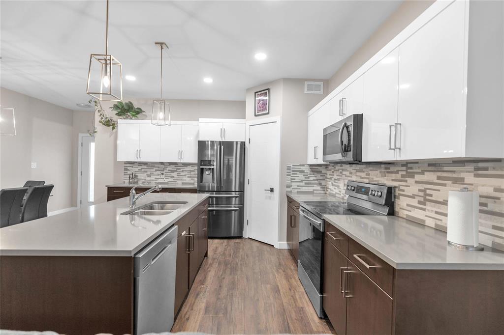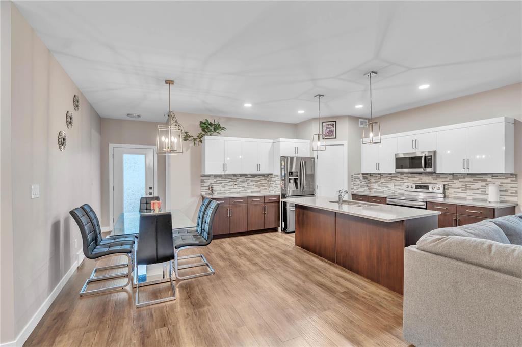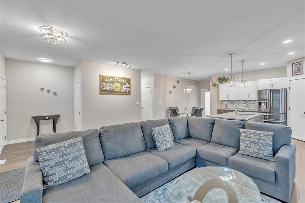 S/S Now, Offers as received. Open House Sat-Sun 2-4pm (18,19 October). Welcome to this beautiful and spacious 1,400 sq. ft. bungalow for sale in the heart of Selkirk, Manitoba! The main floor features a huge primary bedroom with an en-suite, two additional generously sized bedrooms, a full common bath, a bright living area with electric fireplace, and a dining space perfect for family gatherings. The upgraded kitchen boasts quartz countertops, backsplash tiles, a walk-in pantry, a large island, and sleek white glossy cabinets. Additional highlights include 9’ ceilings, tri-pane windows, modern faucets, pot lights, luxury flooring, entertainment unit and a separate entrance to the basement, offering future development potential. Enjoy the fully fenced and landscaped backyard, an attached double car garage, and a welcoming front porch with railings. Conveniently located close to all amenities — this stunning home is move-in ready! Book your private showing today!