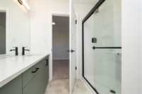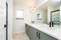 retreat, featuring a walk-in closet, and ensuite with double sinks.