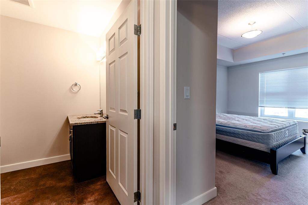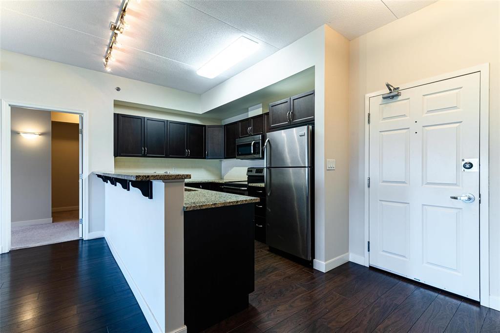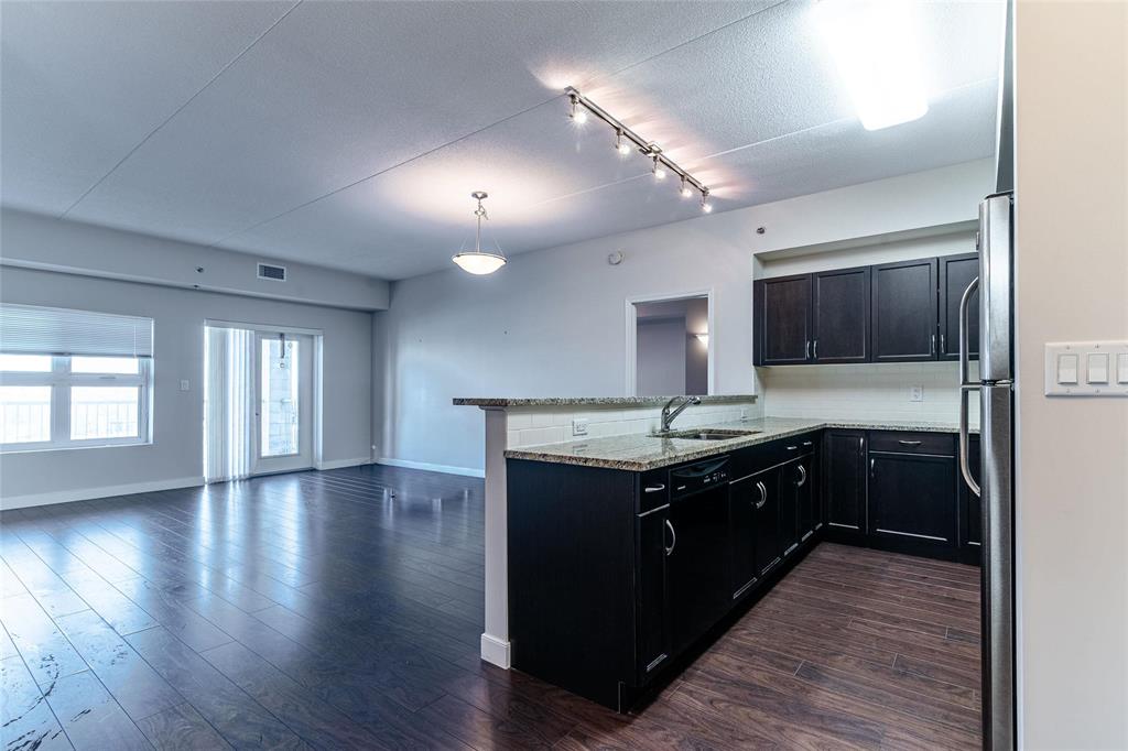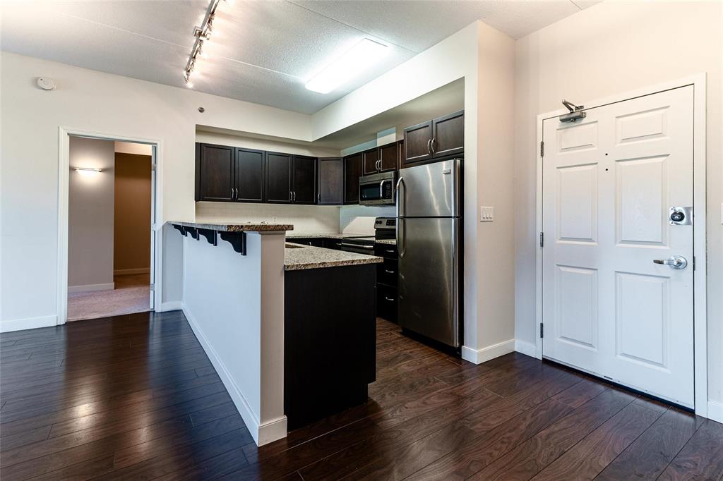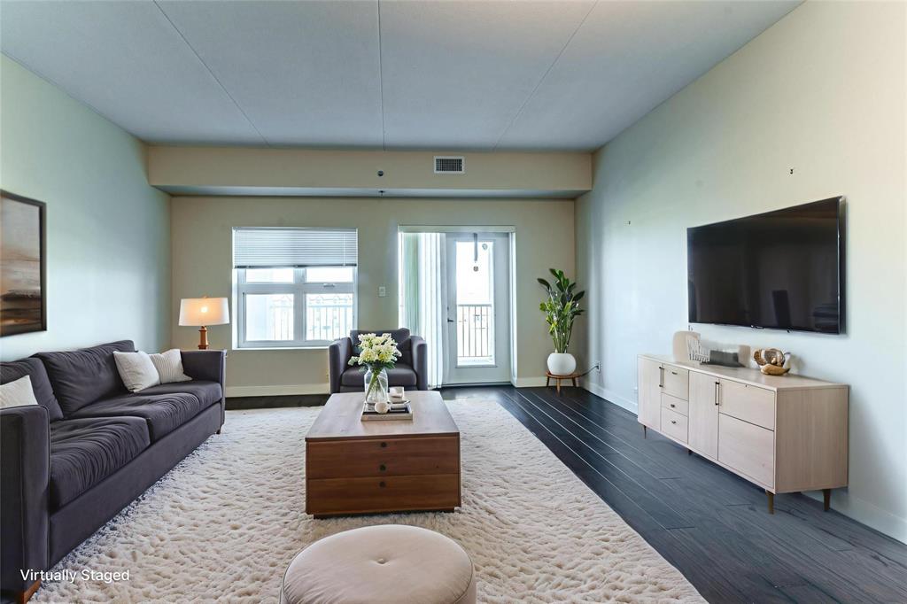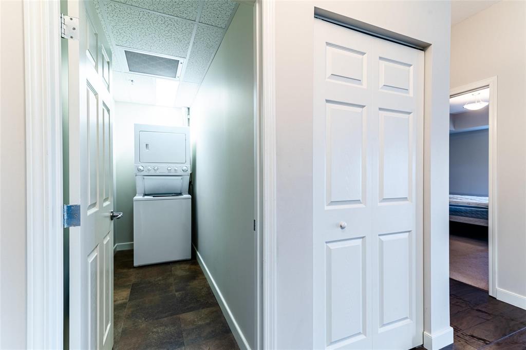 This bright and spacious 1,105 sq. ft. 4th-floor condo offers an excellent use of space with 9’ ceilings, 2 bedrooms, 2 bathrooms, in-suite laundry, and storage. Built with quality and soundproofing in mind, 100 Creek Bend Road features insulated concrete forms, hollow-core floors, and pre-cast concrete balconies supported by concrete columns. The open kitchen featuring tiled backsplash and includes four appliances,a breakfast bar, while the foyer offers huge coat closet. The laundry/storage room is equipped with front-load washer and dryer and space for additional storage. Enjoy the large balcony—perfect for a full patio set and BBQ facing NW.This pet-friendly, smoke-free building offers two parking spots (one underground and one outdoor), two elevators, secure entry, and convenient mail delivery. Located near the Seine River Pathway and close to amenities. Quick possession available!