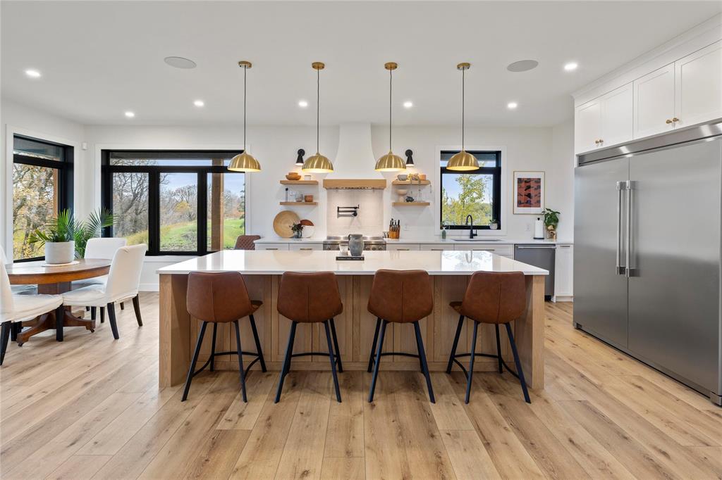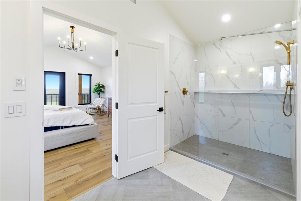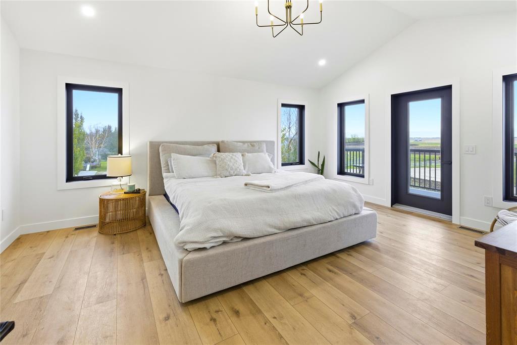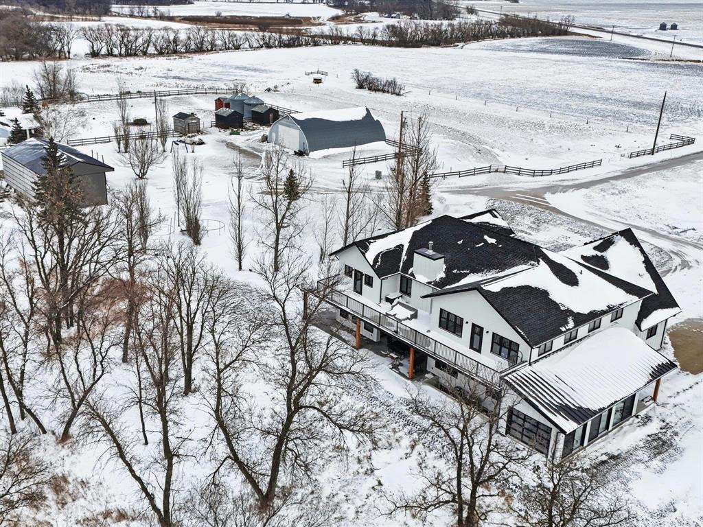 Magnificent home on 36+acres exemplifies craftsmanship & timeless design. Every detail is meticulously curated w/quality finishes & designed layout to suit its spectacular setting. Soaring ceilings, open stairs designed w/custom railings, windows framing views w/ample natural light. The great room showcases elegance w/built-ins & FP flanked w/stone. Chef’s kitchen features-quartz-pot filler-DW fridge/freezer-WIP-a coffee/bar station leading to formal dining. A media room w/wet bar seamlessly transitions to the sunroom with walls flanked w/glass doors for unobstructed views +IFH for added comfort. Added feature: Smart Home technology throughout. The 2nd level features an exquisite primary w/4-pc ensuite, a 200+sqft WIC & access to 2 balconies overlooking the river or views of the acreage. Another 3 beds, 5pc main bath & 2nd-level laundry for convenience. A potential 5th bed accessible to adjoining balcony. The basement is plumbed for a 4th bath. The garage features IFH for year-round comfort. The exterior: stamped patio, serviced shop/den w/potential for in-law suite. Fenced pasture w/barns (1 w/water line) ideal for horse enthusiasts! An exceptional property! A must-see for discerning buyers!