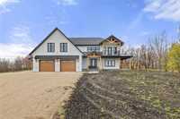 SS Nov 1:Magnificent home on 36+acres exemplifies craftsmanship & timeless design. Every detail is meticulously curated w/quality finishes & designed layout to suit its spectacular setting. Soaring ceilings, open stairs designed w/custom railings, windows framing views w/ample natural light. The great room showcases elegance w/built-ins & FP flanked w/stone. Chef’s kitchen features-quartz-pot filler-DW fridge/freezer-WIP-a coffee/bar station leading to formal dining. A media room w/wet bar seamlessly transitions to the sunroom with walls flanked w/glass doors for unobstructed views +IFH for added comfort. Added feature: Smart Home technology throughout. The 2nd level features an exquisite primary w/4-pc ensuite, a 200+sqft WIC & access to 2 balconies overlooking the river or views of the acreage. Another 3 beds, 5pc main bath & 2nd-level laundry for convenience. A potential 5th bed accessible to adjoining balcony. The basement is plumbed for a 4th bath. The garage features IFH for year-round comfort. The exterior: stamped patio, serviced shop/den w/potential for in-law suite. Fenced pasture w/barns (1 w/water line) ideal for horse enthusiasts! An exceptional property! A must-see for discerning buyers!