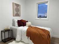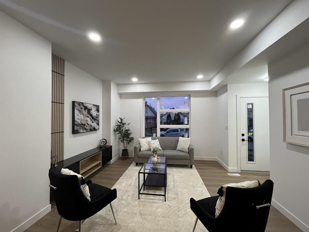 Welcome to this stunning 1,321 sq. ft. newly built home offering modern design, quality craftsmanship, and thoughtful details throughout. This move-in-ready residence features 3 spacious bedrooms, 2.5 bathrooms, and three separate entrances, including a private side entrance to the basement—perfect for future development. The main floor boasts 9-ft ceilings, an open-concept layout, and a modern kitchen with quartz countertops, a large island with breakfast sitting and upgraded cabinetry providing ample storage. Upstairs, the primary bedroom offers his and hers walk-in closets and a luxurious 4-piece ensuite bath. Built with quality in mind, this home includes I-joist floor, a high-efficiency two stage furnace and HRV system, hot water tank, sump pump, PVC Jeld-Wen windows and doors, LED lighting throughout, and upgraded vinyl plank flooring on both levels. The exterior is finished with durable stucco