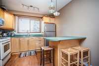 Offers November 4 after6:00pm Immerse yourself in the elegance of this stunning two-story townhouse, a quintessential home for family living. Boasting 3 bedrooms and 2 bathrooms, this residence has been meticulously designed to cater to the comforts and dynamics of family life. The heart of the home is undoubtedly the refined kitchen, complete with a contemporary island and complemented by gleaming hardwood floors that flow seamlessly throughout the property, adding a touch of class and durability. The inclusion of a fridge and stove ensures this kitchen is ready for culinary exploration from day one. Living convenience is paramount with a full basement, featuring a newer furnace and central air conditioning, offering both practicality and peace of mind. Ample storage solutions are gracefully integrated, and the presence of some newer windows infuses the space with natural light and energy efficiency. Nestled in a prime location, this splendid townhouse provides 2 parking spaces and is just a stone's throw away from all necessary amenities, ensuring everything you need is always within reach. The ideal setting for a family seeking both sophistication and convenience.
